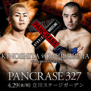 PANCRASE 327(4月29日(金/祝) 東京・立川ステージガーデン)の第1弾決定カード、ウェルター級・木下憂朔(パンクラス大阪稲垣組/1位)vs. 村山暁洋(GUTSMAN/2位、元王者)が発表された。