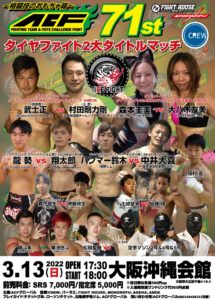 ACF 71st ~タイヤファイト2大タイトルマッチ~(3月13日(日)大阪沖縄会館)の対戦カードが発表された。