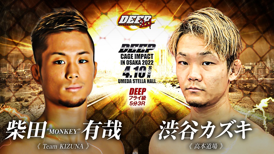 昼のDEEP CAGE IMPACTでは、地元大阪の柴田“MONKEY”有哉が、19年6月の神龍誠とのフライ級暫定王座決定戦で敗れて以来約3年ぶりに復帰。同じくタイトル挑戦経験のある渋谷カズキと対戦する。