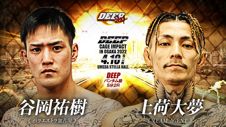 DEEP CAGE IMPACT IN OSAKA 2022(4月10日(日) 梅田ステラホール)の決定5カードが発表された。DEEPがこの会場で開催されるのは14年半ぶり。同日夜にはこの会場で若手時代にキャリアを積んだ第3代DEEPバンタム級王者・前田吉朗の引退興行が行われ、そちらでもDEEPの公式戦が組まれている。