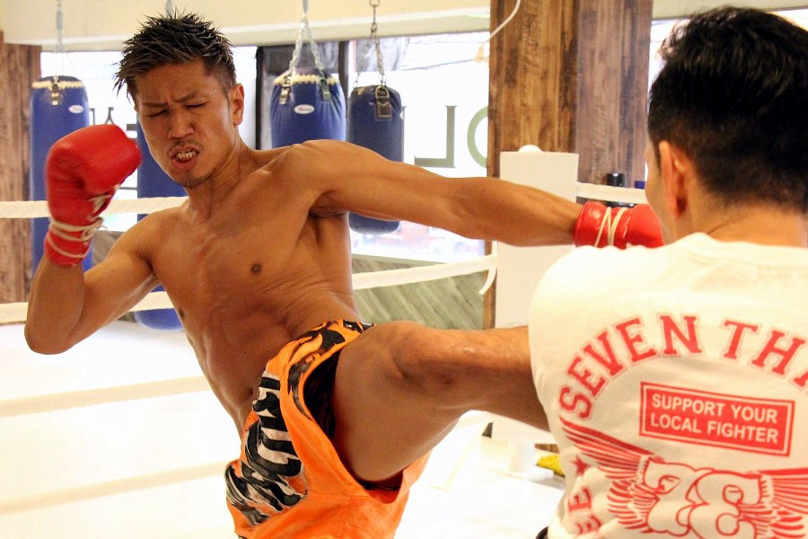 公開練習ではオーソドックス(右構え)とサウスポー(左構え)をどちらも使いながら、鋭いミドルキックや前手のフック・後ろ手のストレートを次々と披露。「仕上がりはいいんですけど腹筋が割れてないんで、今日は腹筋NG!」と腹をキックパンツで隠しながらのインタビューとなったが仕上がりは順調のようだ。