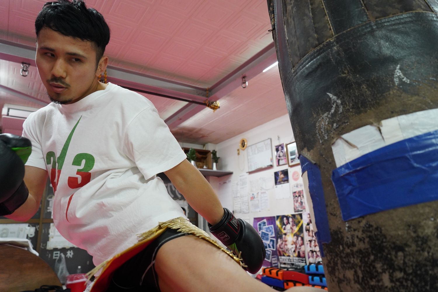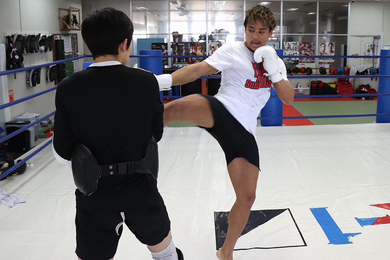 京都・WIZARDキックボクシングジムにて、4月3日(日)東京・国立代々木競技場第一体育館「K-1 WORLD GP 2022 JAPAN~K’FESTA.5~」の[スーパーファイト/K-1フェザー級/3分3R・延長1R]で軍司泰斗と対戦する斗麗が公開練習を行った。