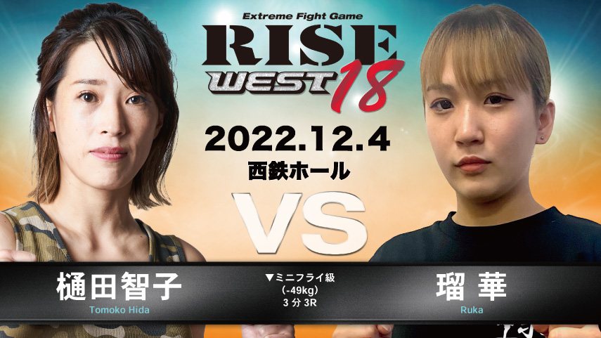 またRISE WESTレギュラー選手の田上健太や岡﨑晃志、弾丸風太やMMAとキックの二刀流ファイター樋田智子などのカードが決定しています。