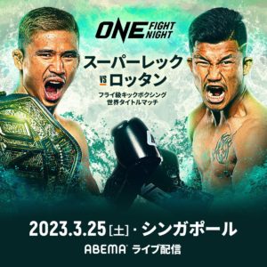 なお、3月25日の大会では、1月にONEキックボクシング・フライ級世界王者となったスーパーレック・ギャットムーカオが、同級ムエタイ王者のロッタン・ジットムアンノンを相手に初防衛戦を行う。
