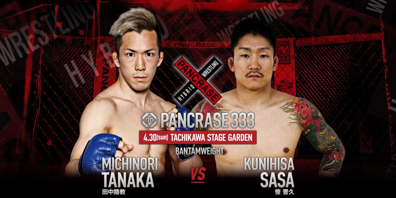 PANCRASE 333(4月30日(日) 東京・立川ステージガーデン)にバンタム級2試合、田中路教[みちのり](チーム・アルファメール/元PXC王者)vs. 笹晋久[くにひさ](パラエストラ柏)、ジェイク・ムラタ(パラエストラTB/ Fighting Nexus/元ZST級王者)vs. 矢澤諒(パンクラスイズム横浜)が追加された。