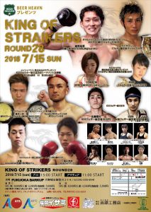 KING OF STRIKERS ROUND 28(7月15日(日)福岡 BARKUP)の対戦カードが発表された。ウェルター級では九州地方の森木一吉、関西地方のYusuke MTカッバンラオ、中国地方の太聖、関東地方の滝口幸成の参加する王者決定1DAYトーナメントを開催する。