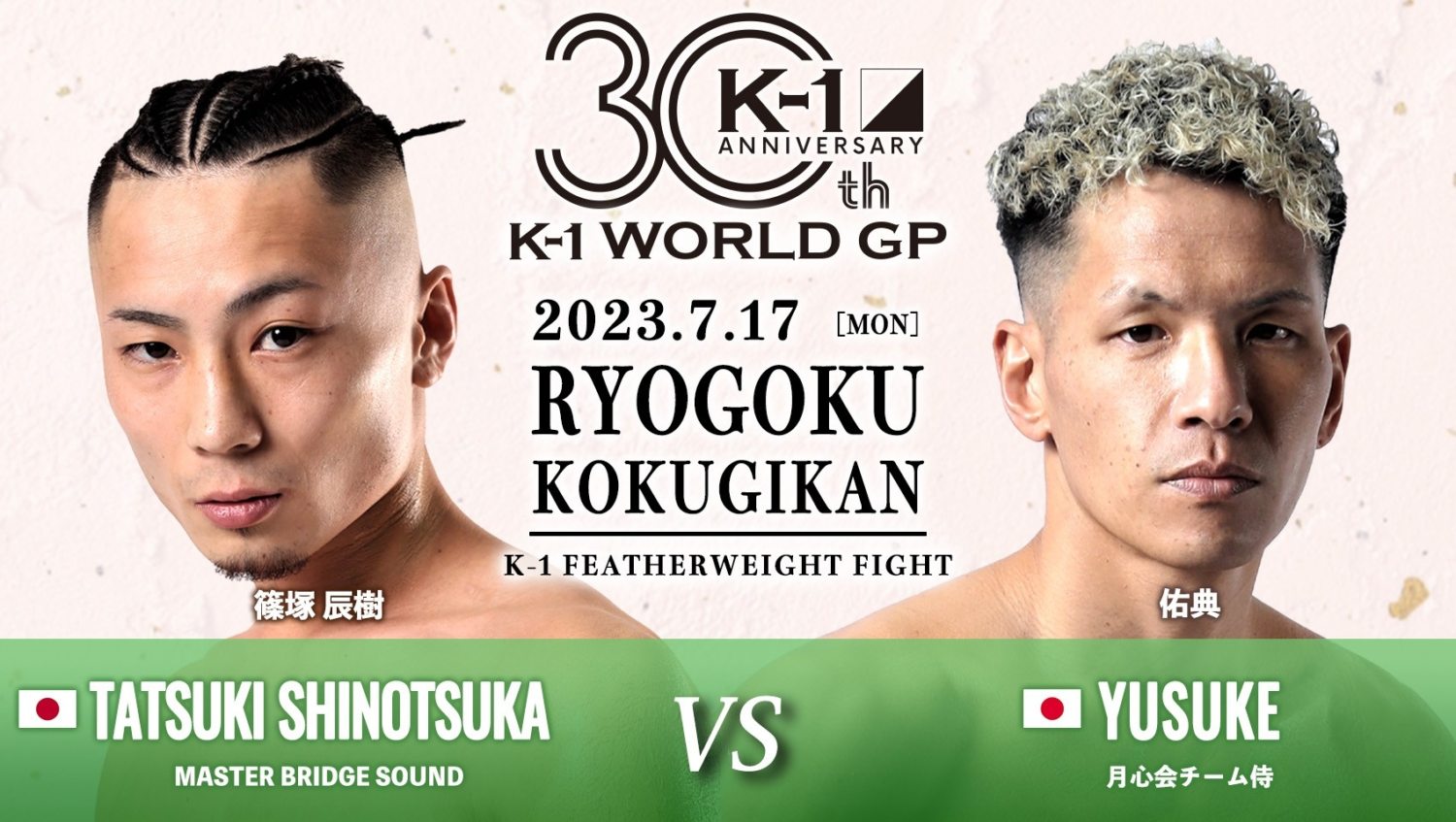 一方の佑典も2021年からK-1 GROUPに参戦。2022年にKrushのリングで連敗を喫したものの、2023年5月のKrush後楽園大会で宮崎勇樹に勝利して連敗脱出を果たした。篠塚と佑典は昨年9月のKrush後楽園大会で対戦予定だったが、篠塚の怪我で流れた経緯もある。