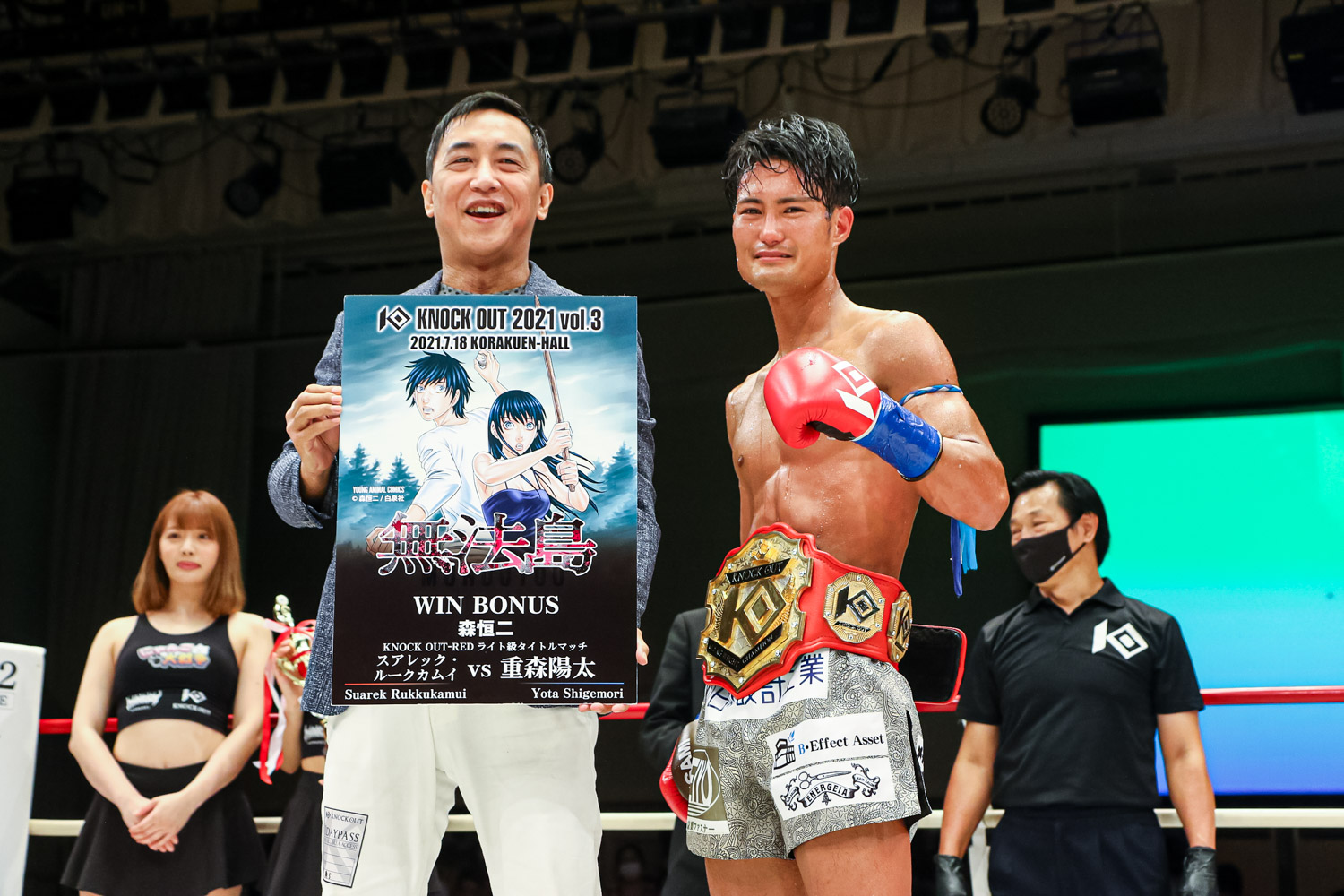 KNOCK OUT 8.6 後楽園ホール:重森陽太、ONEルンピニーのメインイベンター・バットマンと対戦。武蔵欠場で小倉尚也が古木誠也の王座挑戦。スアレック引退セレモニーも