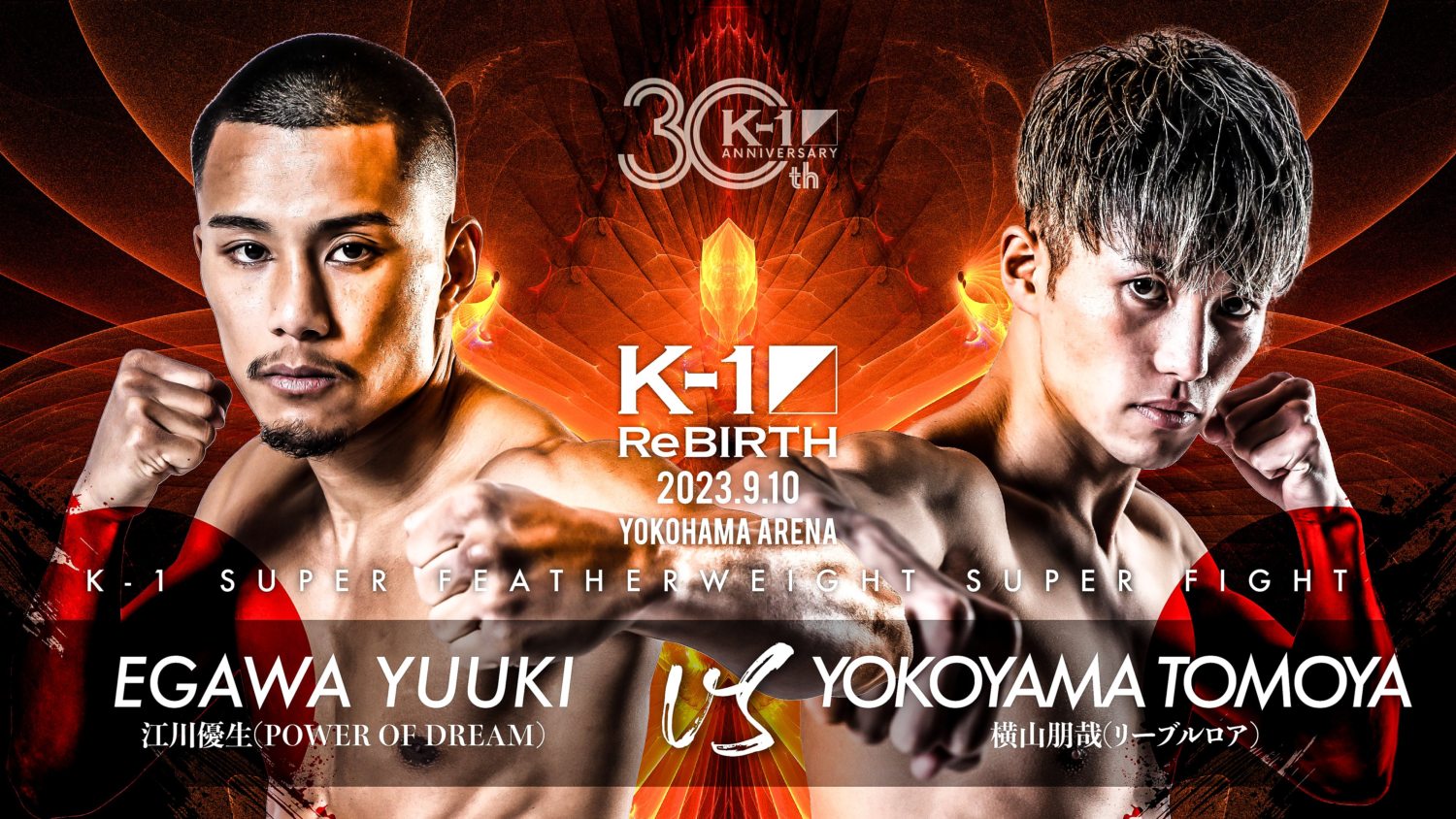 ReBOOT ~ K-1 ReBIRTH ~(9月10日(日)横浜アリーナ)にスーパー・フェザー級(60kg)江川優生(POWER OF DREAM/元K-1&Krushフェザー級王者)vs. 横山朋哉(リーブルロア)、ライト級(62.5kg)里見柚己(team NOVA/Krushライト級王者)vs. 伊藤健人(K-1ジム蒲田チームアスラ)の2試合が追加された。