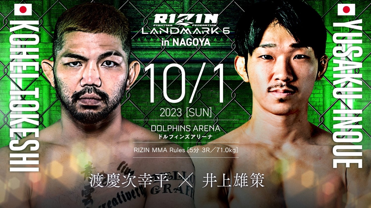 RIZIN LANDMARK 6 in NAGOYA(10月1日(日)ドルフィンズアリーナ(愛知県体育館))の決定12試合が発表された。メインイベント相当のカードは後日発表となる。試合場はケージが採用される。選手のコメントもRIZINから届いている。