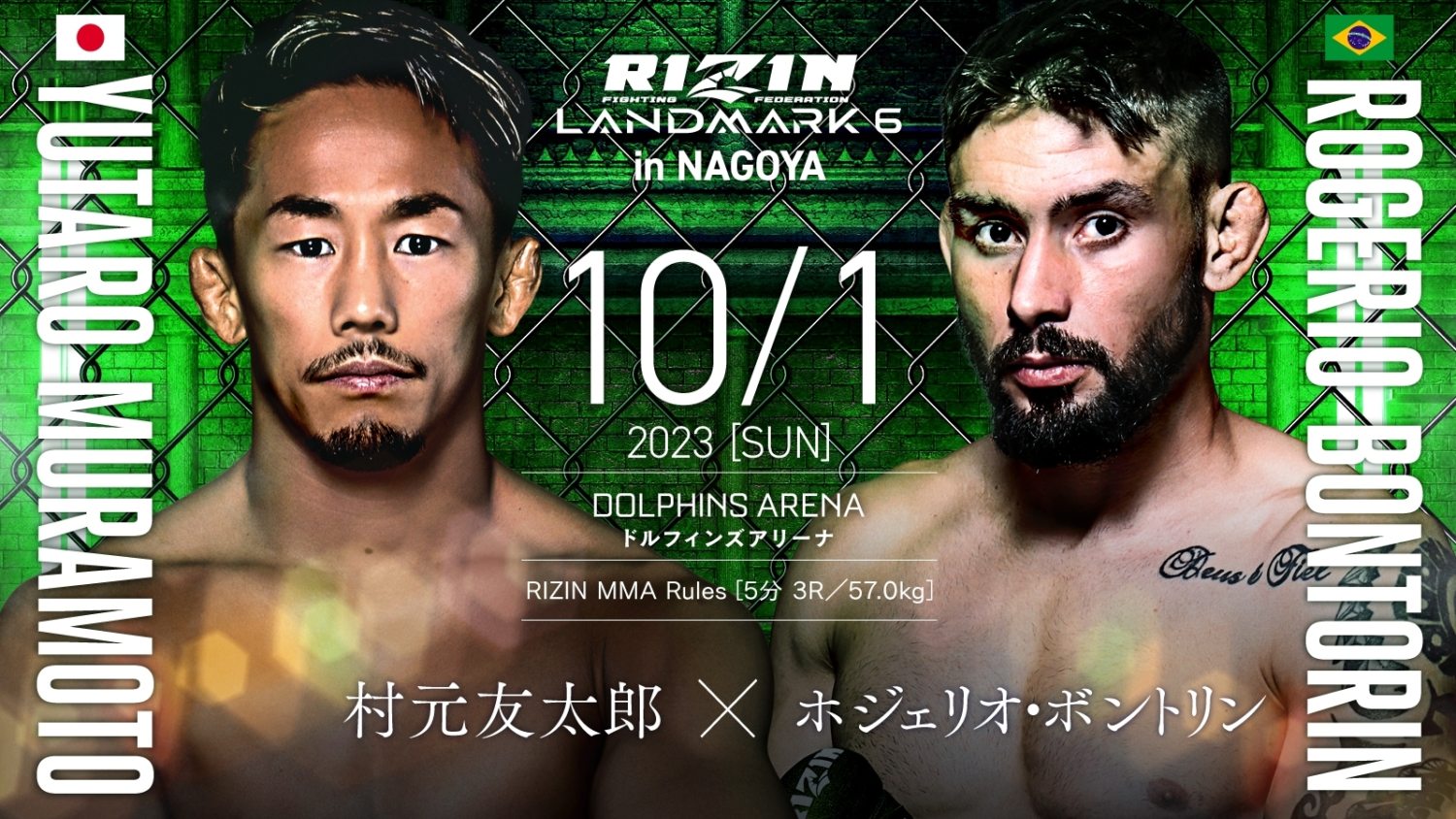 ◆村元「RIZINファンの皆さんこんにちわ!ALIVEの村元友太郎です!今回、元UFCフライ級7位のホジェリオ・ボントリン選手を撃破し、RIZINフライ級トップ戦線に駆け上がります!自分の本拠地である名古屋で過去最強の相手と戦えることを嬉しく思います!熱い応援よろしくお願いします!!」