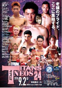 新日本キック 伊原道場主催「TITANS NEOS 24」(9月2日(日)後楽園ホール)の対戦カードが発表された。7月8日の伊原道場主催大会から江幡睦、勝次、斗吾、重森陽太、高橋亨汰が連続出場。睦、勝次にHIROYUKIを加えた3人はタイ人を迎え撃つ。7月から交流がスタートしたNKBからは元ミドル級王者の田村聖が参戦し、日本ミドル級王者の斗吾と対戦する。高橋の相手・ダルビッシュ黒木は、3月にRISE福岡大会で行われたRIZIN出場権を争うトーナメントで優勝し、5月のRIZIN福岡大会にも出場した選手で、高橋とは肘無しでの対戦となる。