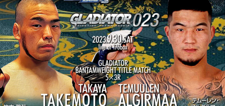 ニュース 2023-08-06 by BOUTREVIEW · Published 2023-08-06 GLADIATOR 9.30 大阪 176BOX:バンタム級王者のテムーレンに元王者の竹本啓哉が挑戦。フェザー級王座決定戦はモンゴル対韓国に。森戸新士×世羅智茂のPROGRESS暫定王座決定戦も