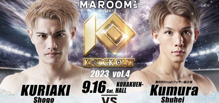 ニュース 2023-08-09 by BOUTREVIEW · Published 2023-08-09 · Last modified 2023-08-10 KNOCK OUT 9.16 後楽園ホール:元Krushフェザー級王者・玖村修平が初参戦し栗秋祥梧と対戦。大谷翔司×久井大夢でBLACKライト級王座決定戦。ぱんちゃん璃奈、宇佐美秀メイソンも出場
