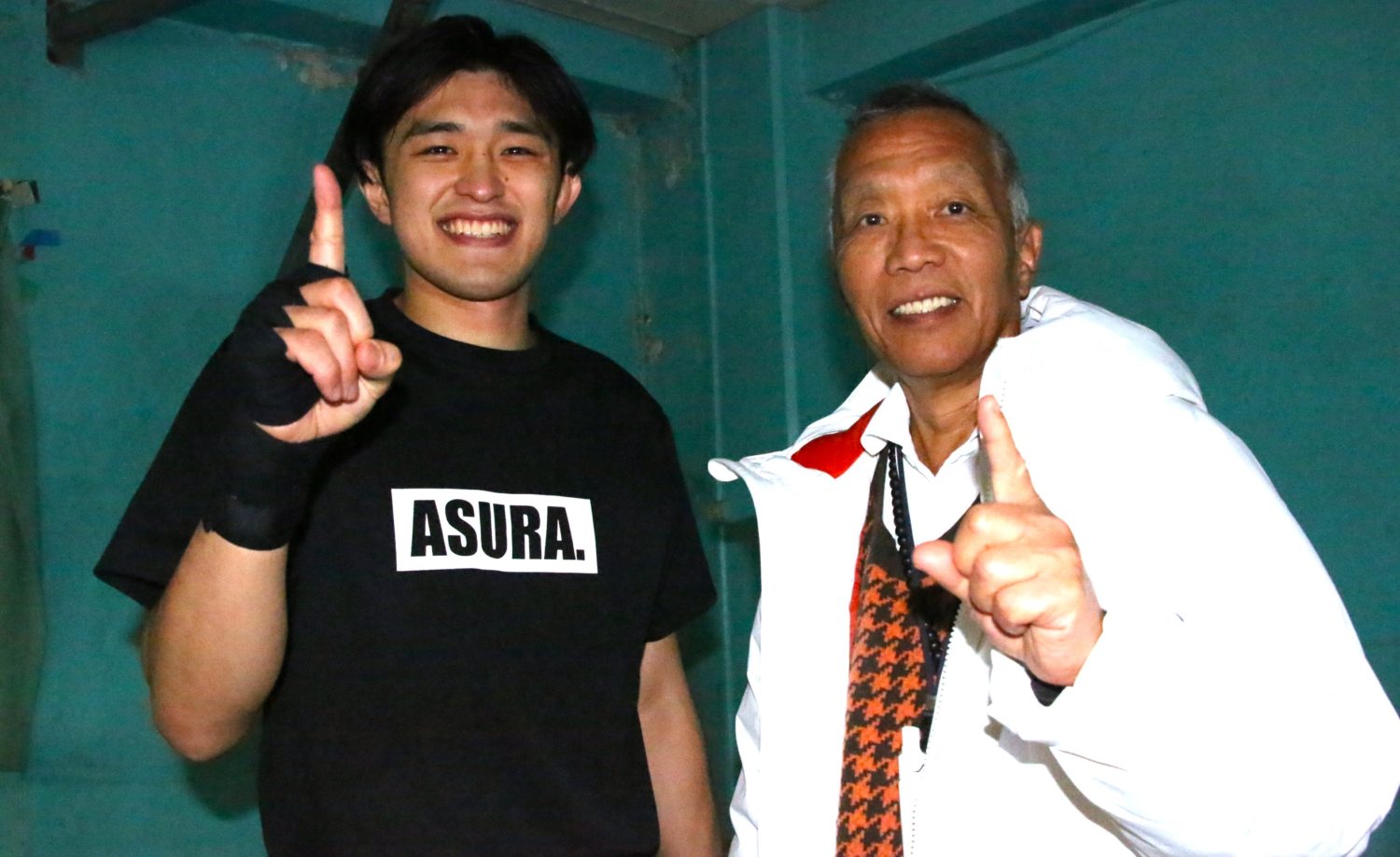 桜庭和志の長男・大世、初のK-1アマチュアでKO勝ち。試合後には石井和義アドバイザーが技術指導