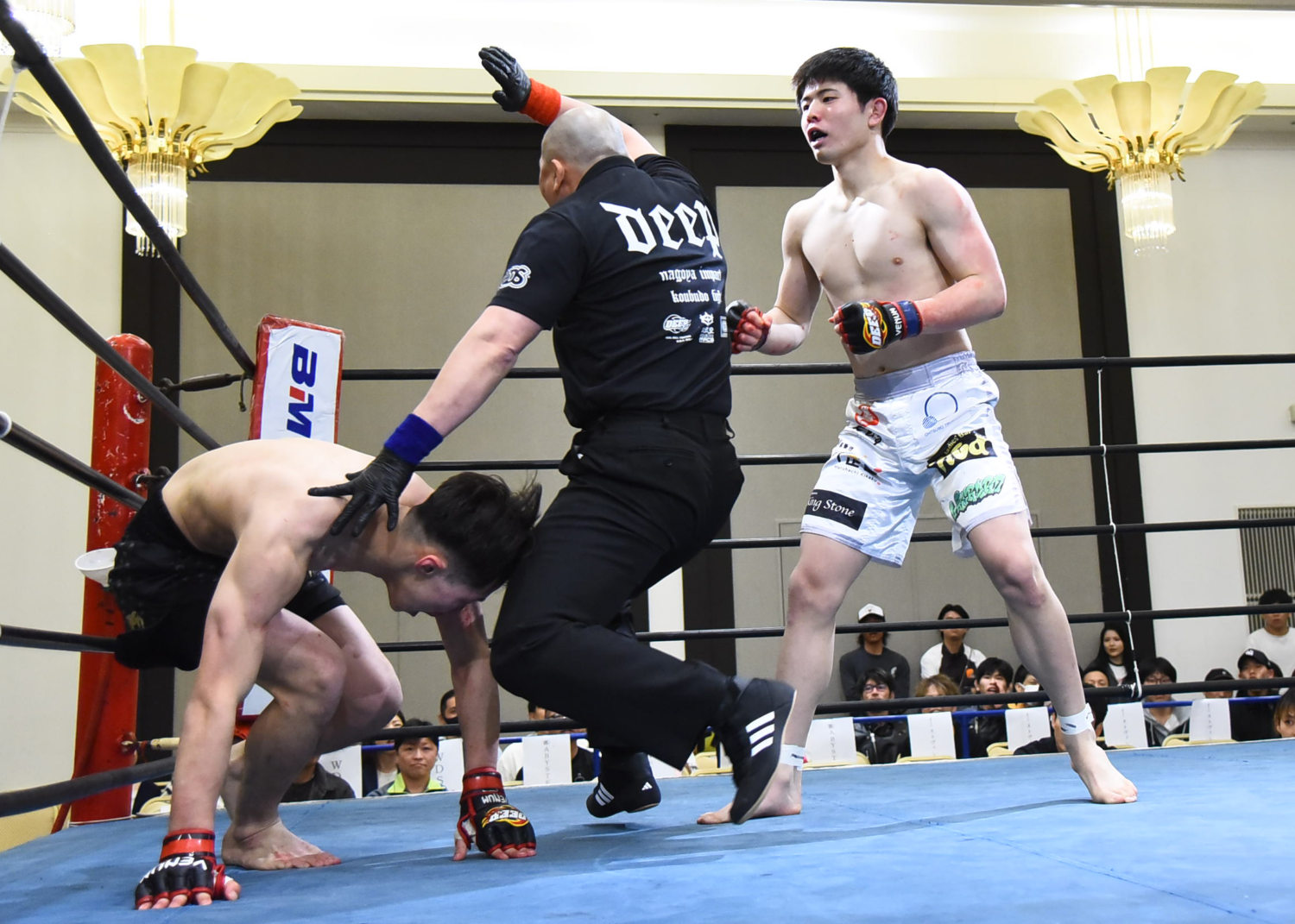 1Rからテイクダウンして上を取りパウンドで優位に立つ時任は2Rに左ハイキックでKO勝ちした。