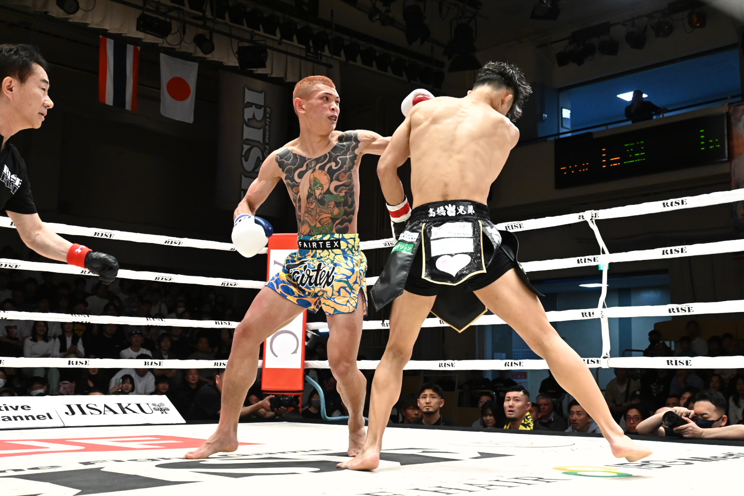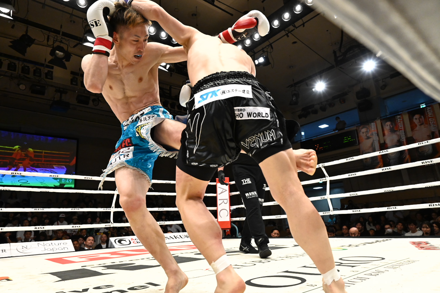 良星は22年4月のRISEに大森隆之介にKO負けして以来2年ぶりの試合。京谷は昨年7月の大阪大会で翔磨に判定勝ちして以来の試合。