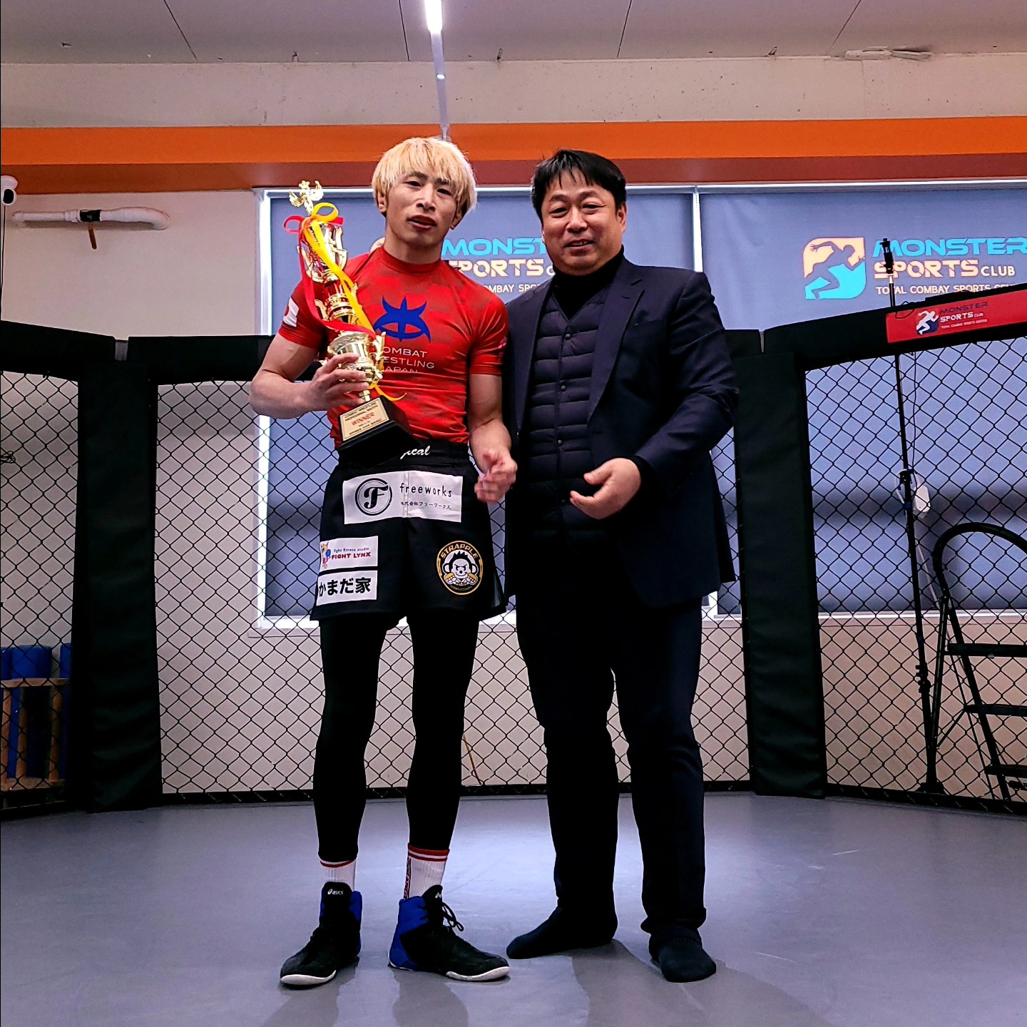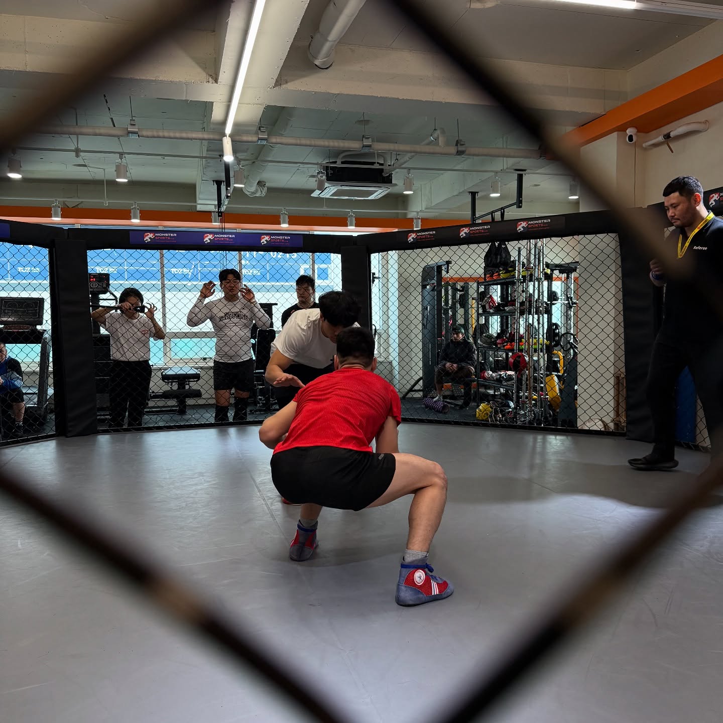 また、今回は一昨年に韓国で行われたチームマッチ同様ケージで行われたため、ケージ用ルールを制定しました(ケージレスリングからのテイクダウン=1ポイント)。あくまでも「スタンドレスリング」から試合をスタートするというコンバットレスリングの理念を元にしたルールです。
