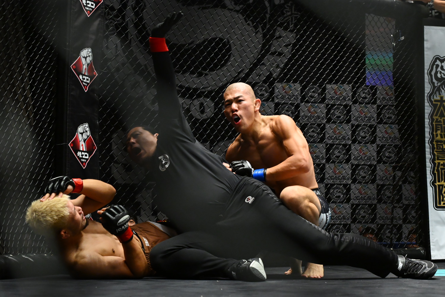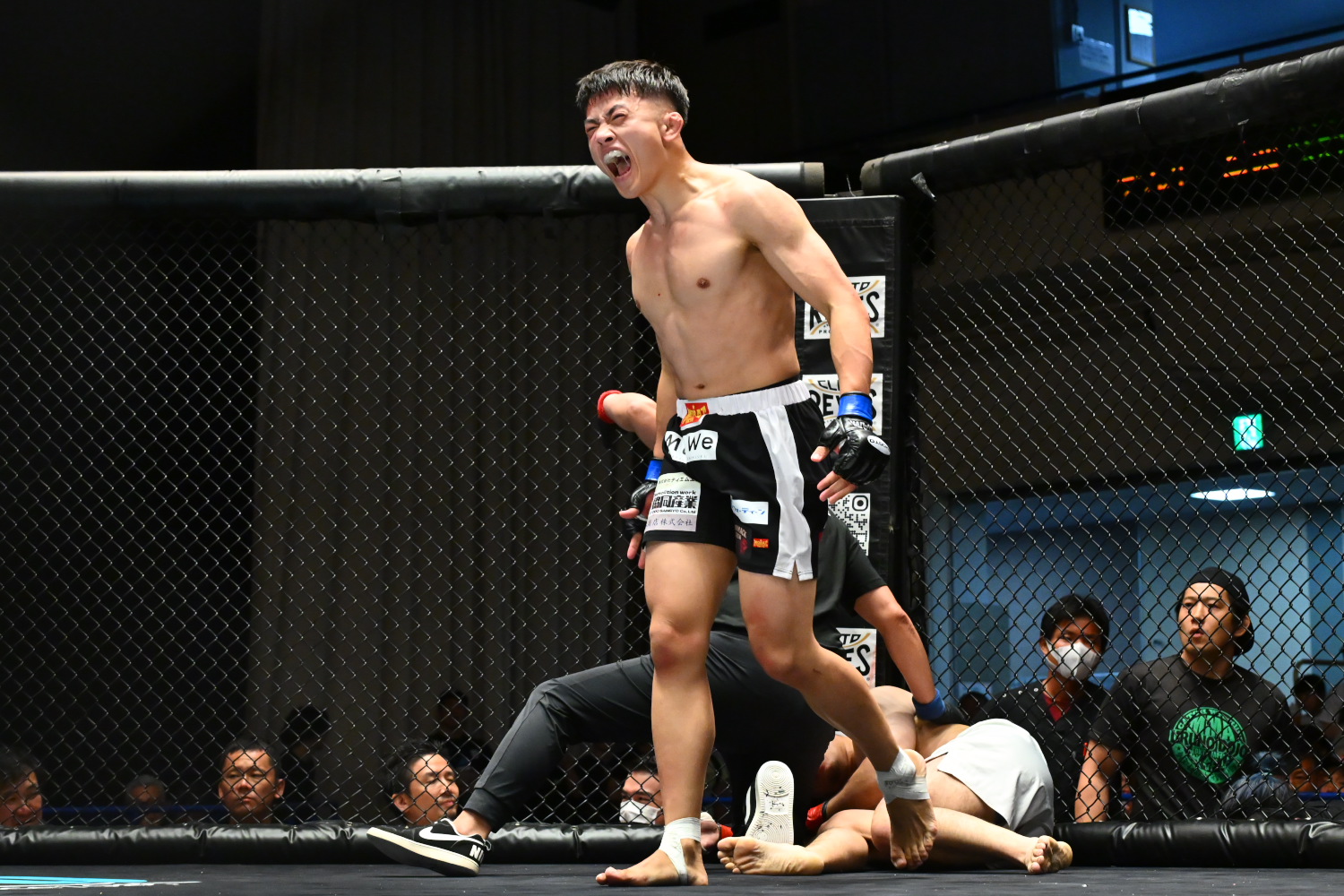 2R、序盤こそ青柳がまたもタックルで倒して上になるが、中野はその先を許さずスタンドに戻す。中野は青柳のタックルを切ると、サウスポーからのパンチ、左膝、ミドルのヒットをじわじわと増やす。すると中野が青柳を金網際に詰めてパンチを連打してダウンを奪うと、最後はパウンドを当て続けたところで、レフェリーがストップした。