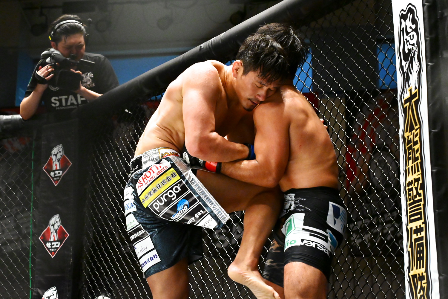 1R、黒部がスタンドの展開で時折パンチを当て、やや優位に進める。中盤、黒部がテイクダウンを奪うと、すぐにバックマウントを取り、そのままキープし、執拗に裸絞めを狙う。最後は腕十字に切り替えるが、極まらず終わる。記者採点は黒部。