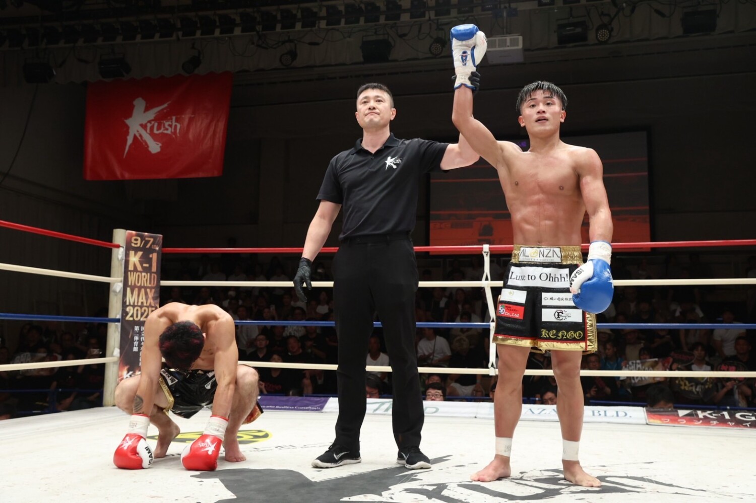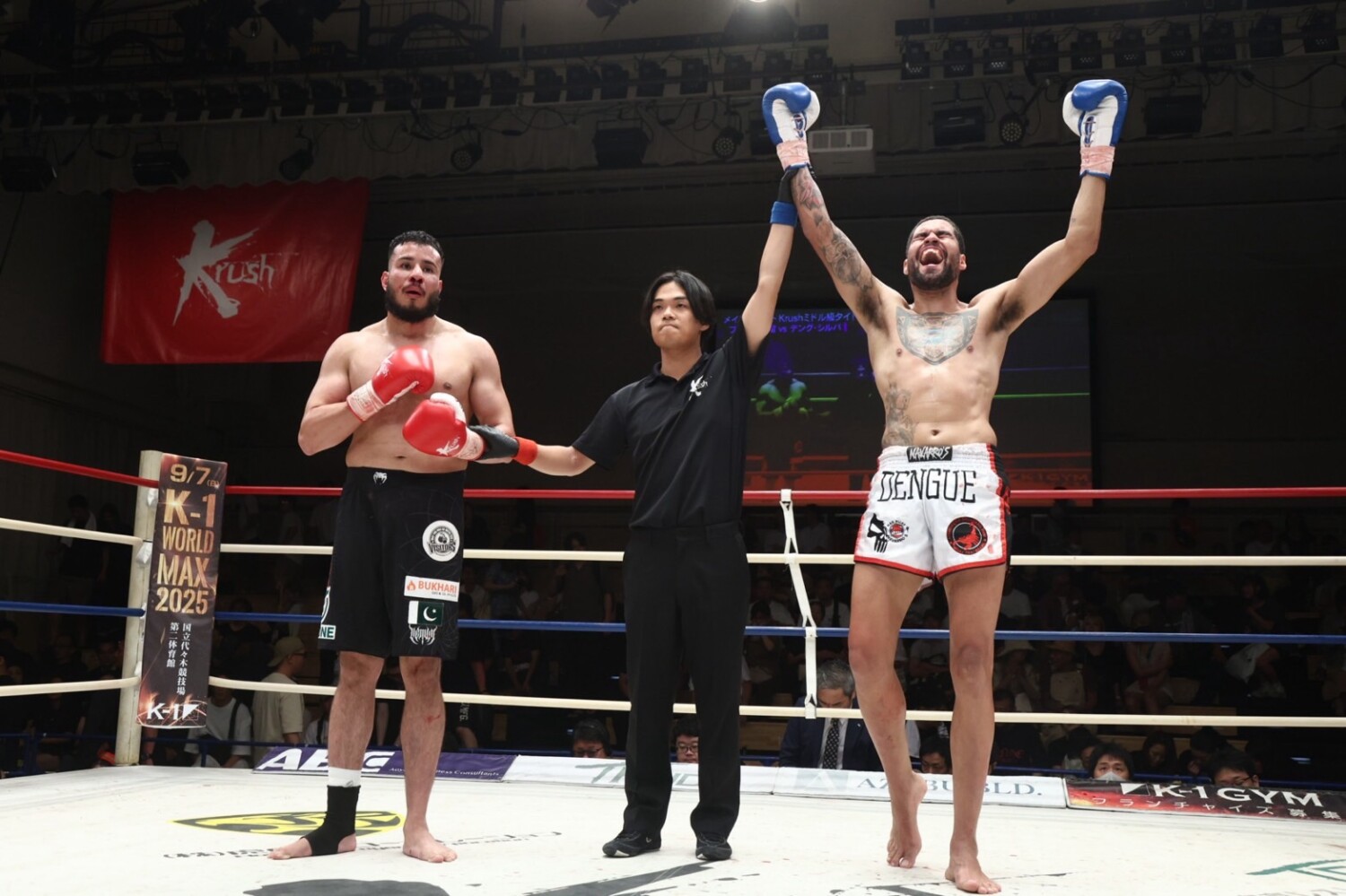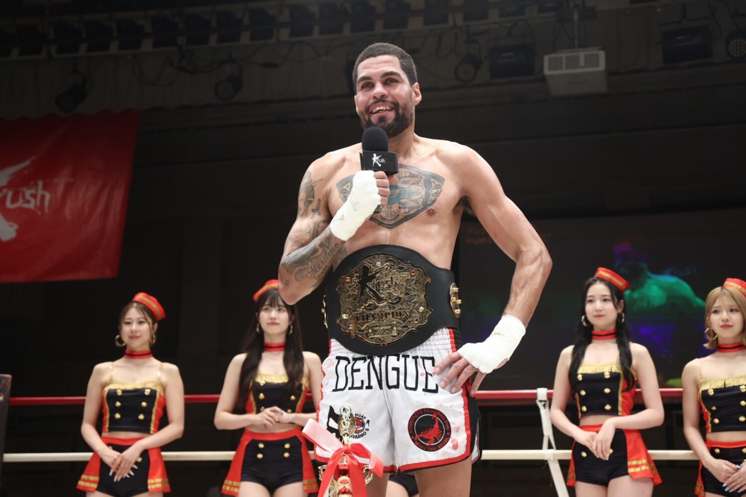 ベルトを巻きマイクを持ったデングは「はるばるブラジルから日本に来て、Krushのベルトを取れたのがうれしいです。マネジメントをしてくれたダニロ・ザノリニ先生、ブラジルのジムの方々のおかげです。今後はK-1で70kgか75kgのチャンピオンになりたいです」とアピールした。K-1のミドル級王者の松倉信太郎は23年12月にハッサン・トイを下して王者になって以降、まだ防衛戦をしていないため、デングが挑戦者の有力候補となりそうだ。