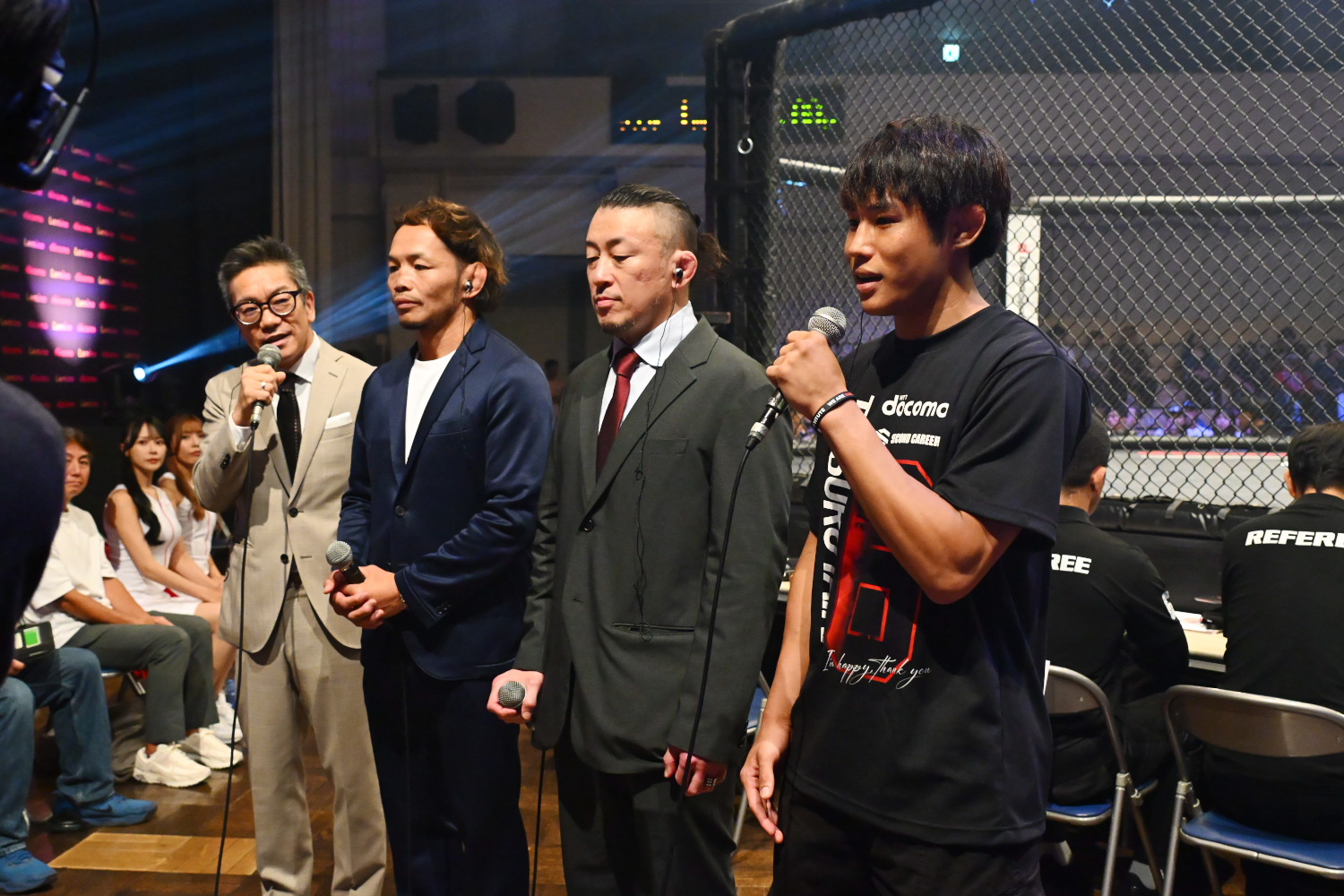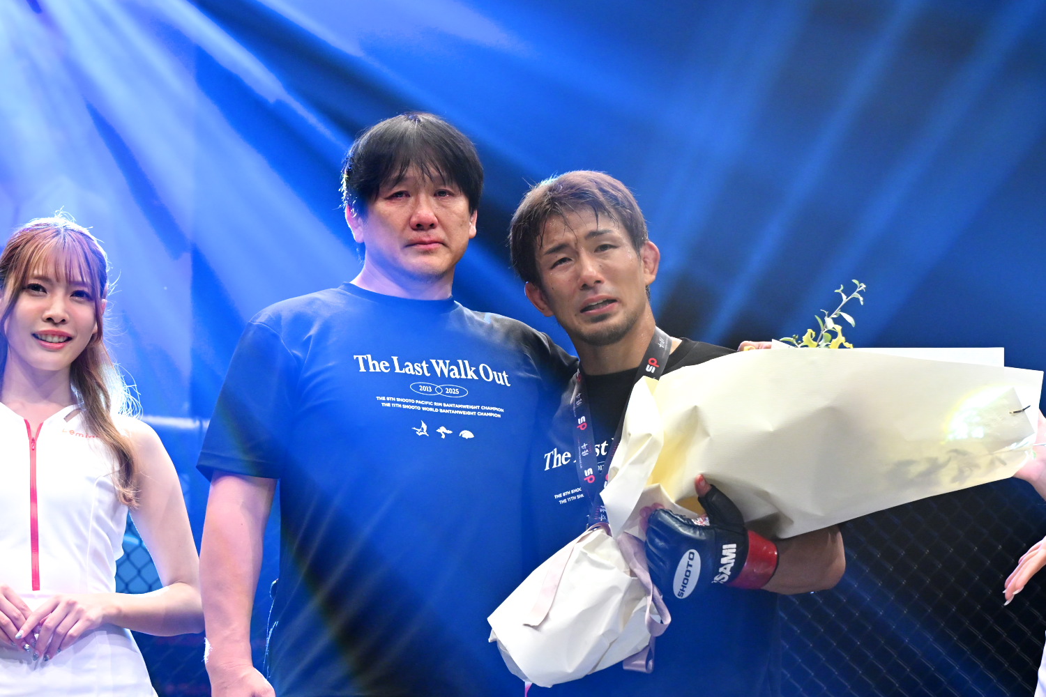 試合直後、岡田の引退セレモニーが行われた。マイクを持った岡田は「ドミネーター君がいろんなリスクを背負って、僕の気持ちを汲んでくれて、男気で出てきてくれたから、こんなに素敵な会場でこんなに温かいお客様の元、最高に幸せな格闘技人生を送ることができました。今日の試合は僕個人の引退試合とかいうレベルではなくて、初めてNTTドコモさん、Leminoさんが修斗に手を差し伸べてくれて始まる、本当に大切な第1回の大会でした。ドミネーター君じゃないとこの作品は作れなかったと思います。本当に心の底からドミネーター君ありがとうございました」と弥益に感謝の言葉を述べた。