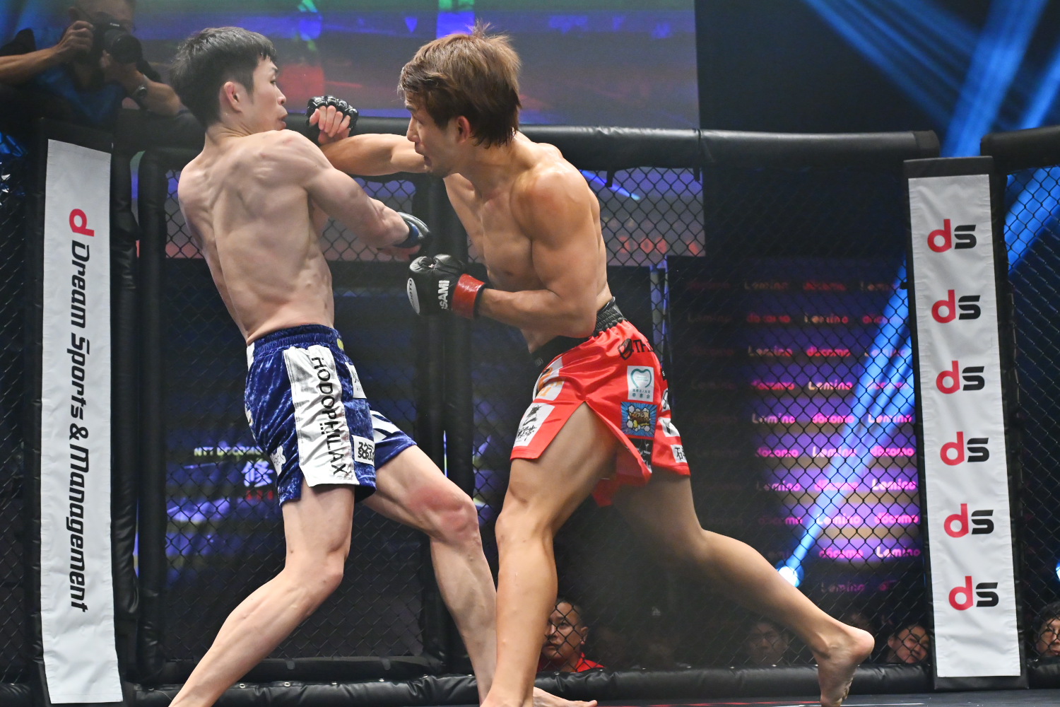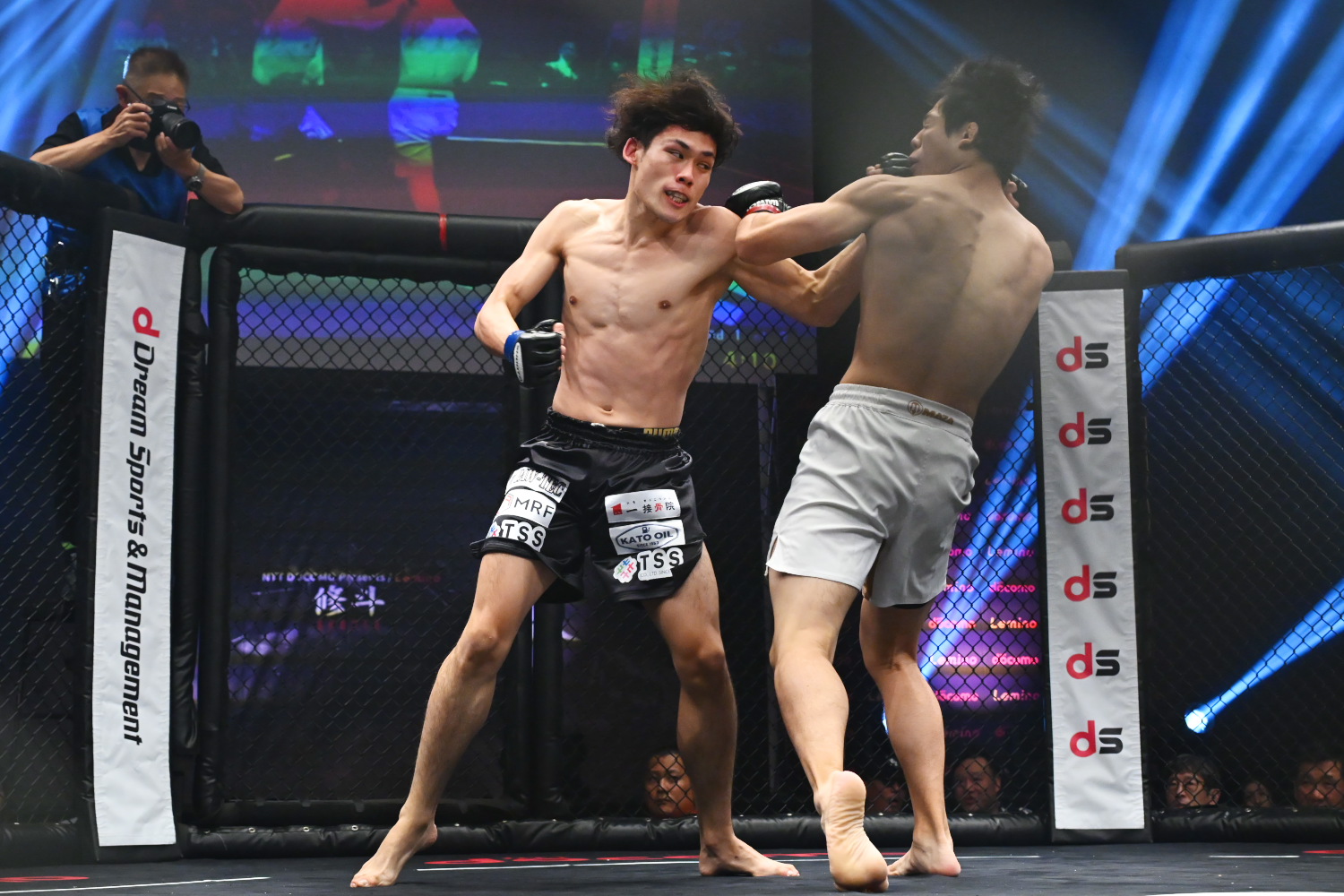 2R、内藤がサウスポーからの左ミドルを立て続けにヒットする。だが中盤、当真が片足タックルで倒し、またもグラウンドに持ち込み、上からで押さえる。当真はバックを狙うが、内藤はすぐ立つ。内藤は左ミドルをまたもヒットするが、残り1分を切り、当真はまたもタックルで倒し、今度はバックを奪い、軽めだがパウンドをまとめて印象を作って終える。記者採点は当真。