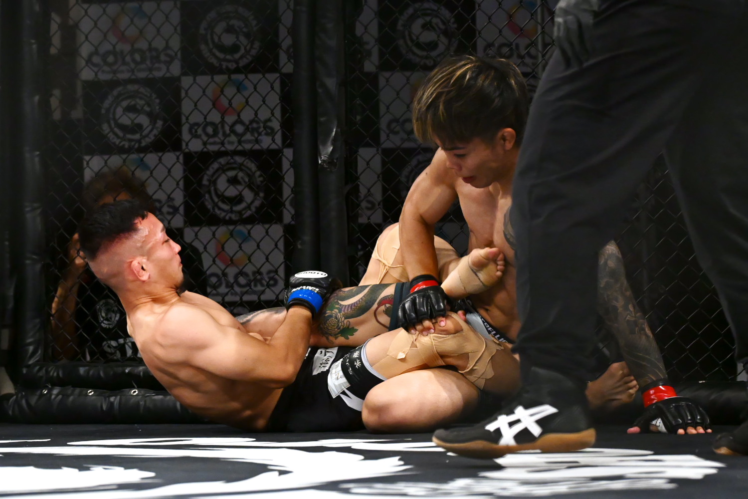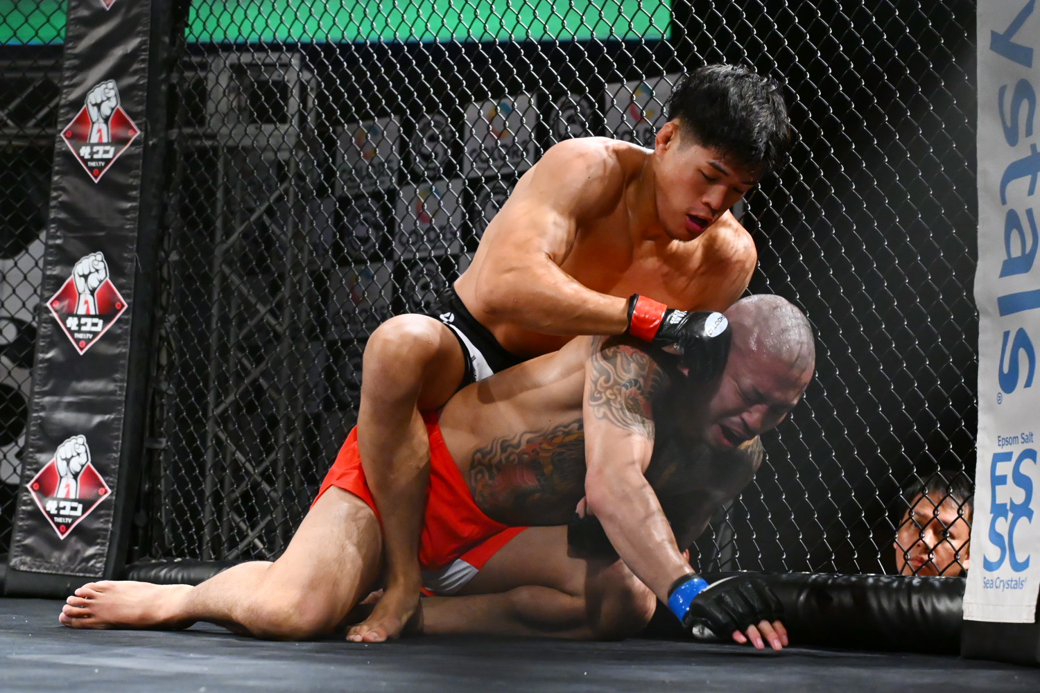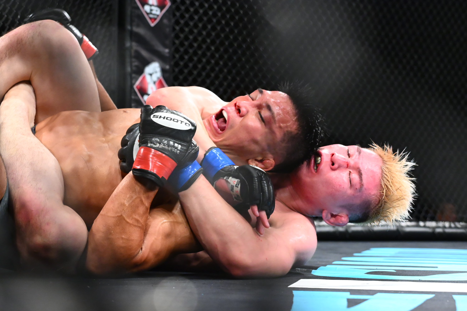 1R、旭那が序盤からタックルを仕掛けて倒す。旭那はハーフガードで押さえる。旭那はパウンドを時折当てる。終盤、旭那はハーフガードに移って、引き続き押さえ続ける。すると残り1分を切り、相手の首を抱えパスガードすると、パウンドを当て追い詰める。そして残り10秒を切り、腕十字を極めタップを奪った。