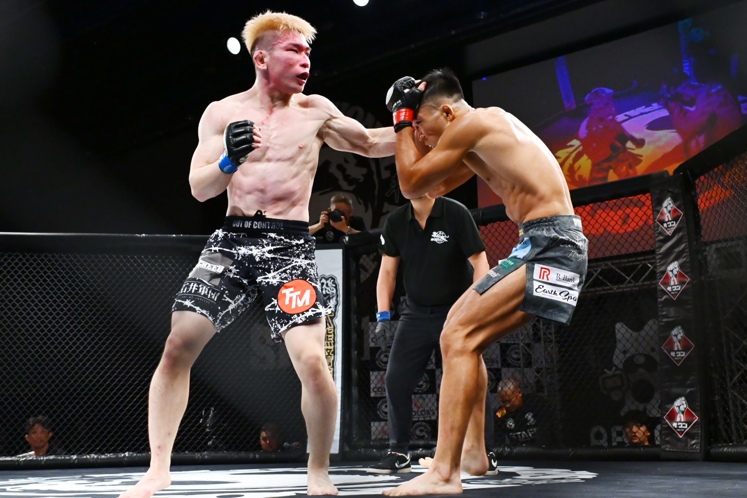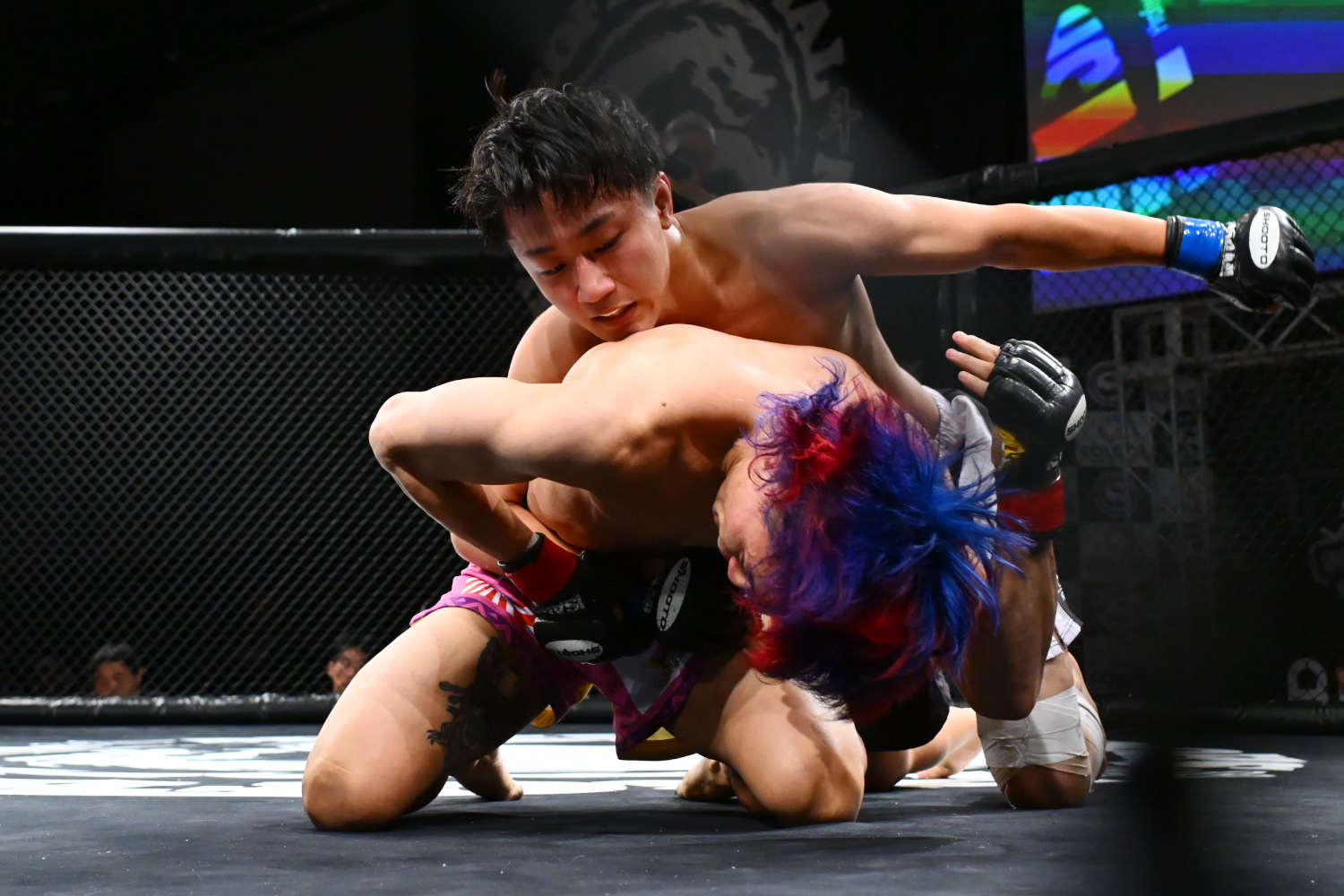 1R、田口がテイクダウンを奪うが、マッチョがすぐに返して上になる。その後もお互い上を取り合う展開に。終盤、田口がバックマウントから裸絞めを狙うが、マッチョは脱出し上からパウンドを当てる。マッチョは立つと、座った状態の田口の胸に膝蹴りを2発当てる。顔面スレスレの膝もあったが、内田レフェリーは続行する。ラウンド終了後、レフェリーはマッチョに何か声をかけ、マッチョは両手を横に広げるセーフのジェスチャーをしていたので、膝蹴りに関する会話があったようだ。記者採点はマッチョ。
