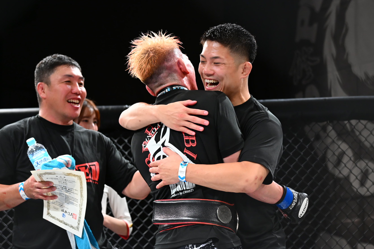 第14代世界バンタム級王者となった永井はベルトを巻くと「自分の挑戦を受けて下さった齋藤選手、ありがとうございました」と話し、TRIBEの長南亮代表、チームメイト、家族に感謝を述べた後、「まだまだこんなんじゃ恩返しが足りないんで、防衛して、UFCのベルトを巻くのが目標なので、これからも応援サポートお願いします」とアピールした。