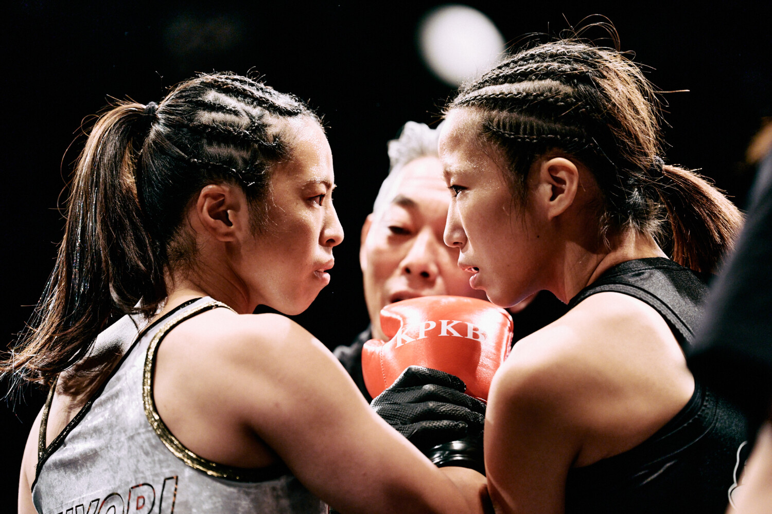 KPKBインターナショナル女子アトム級王座決定戦は”関西のマドンナ”こと坂田実優と”九州のプリンセス”大西日和が、ゴング前からバッチバチの睨み合い。