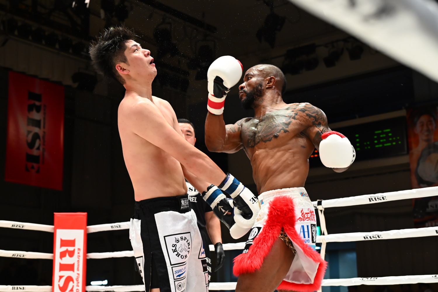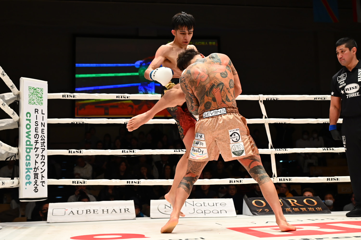 1R、宙樹は前に出る裕人に対し手距離を取りつつ、左のジャブストレート、右ロー、テンカオ等を随所でヒットする。宙樹は慎重で攻撃は少ないが、当たった際の威力は大きく、裕人はもらうとバランスを崩してしまう。裕人もパンチを振るうが空振りが多い。記者採点は宙樹だがまだイーブンもありうる。