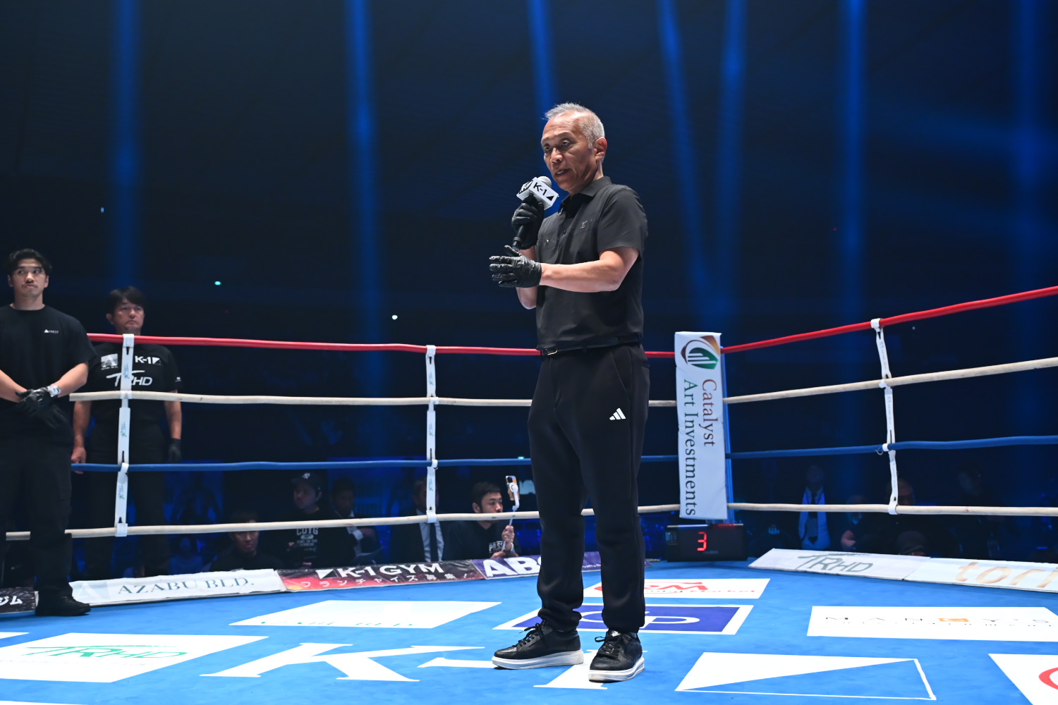 なお、この一戦はK-1創始者の石井和義・正道会館館長がレフェリーを務めた。試合前にはマイクを持ち、ダウンを奪った選手はすぐにニュートラルコーナーに行くように指導した。試合では松本が実際にすぐコーナーに行かない場面があり、石井氏はカウントを止める一幕もあった。