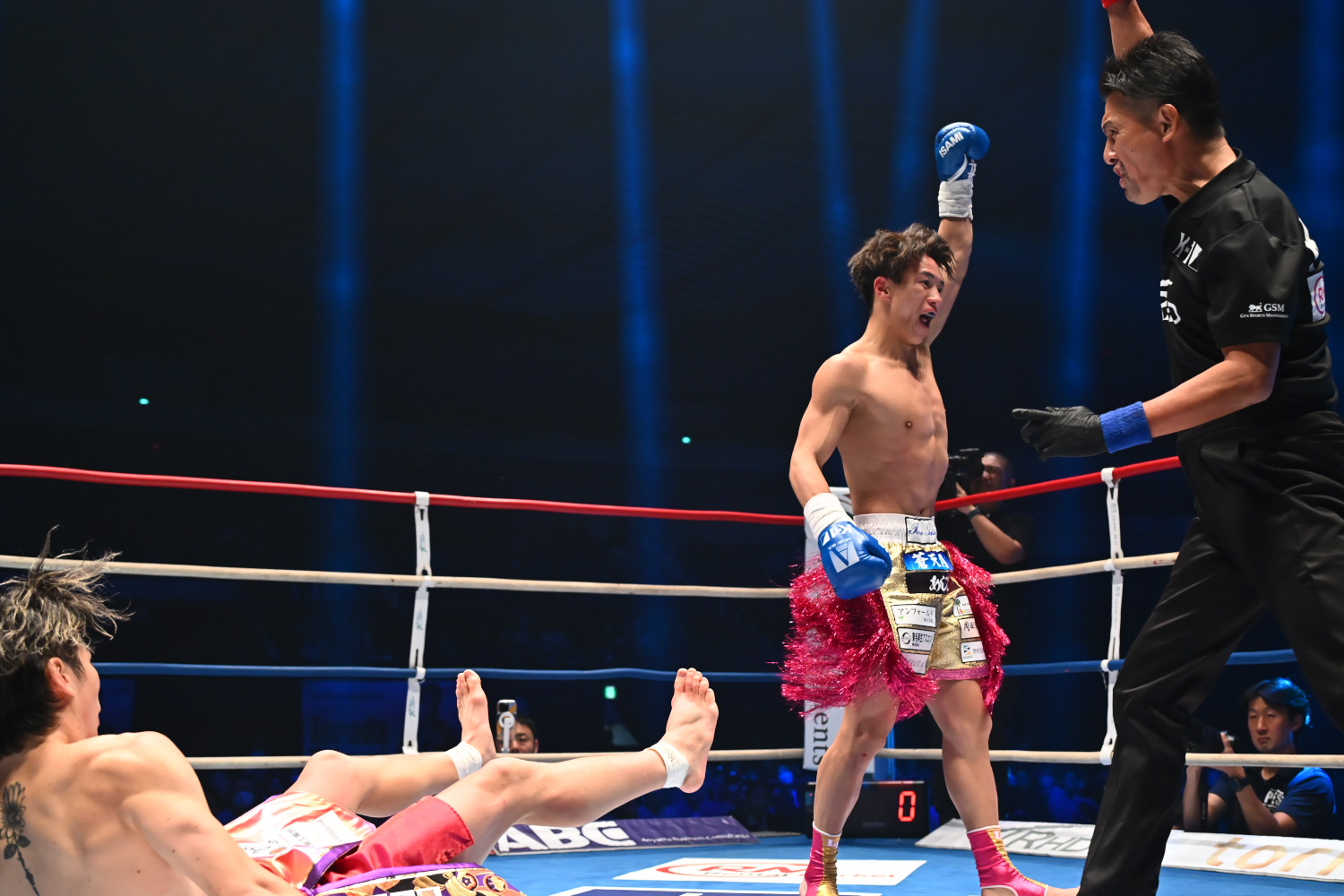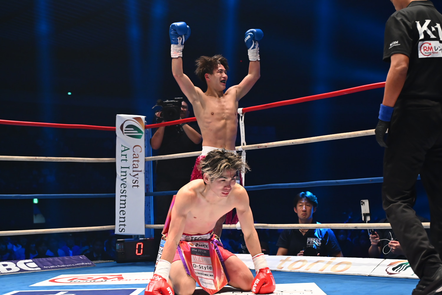 2R、松本は左ボディを効かせて永坂を下がらせ、パンチラッシュからの右ストレートでダウンを奪う。さらに松本は右ストレートでダウンを奪うと、最後も左右のフックの連打で倒しKO勝ちした。