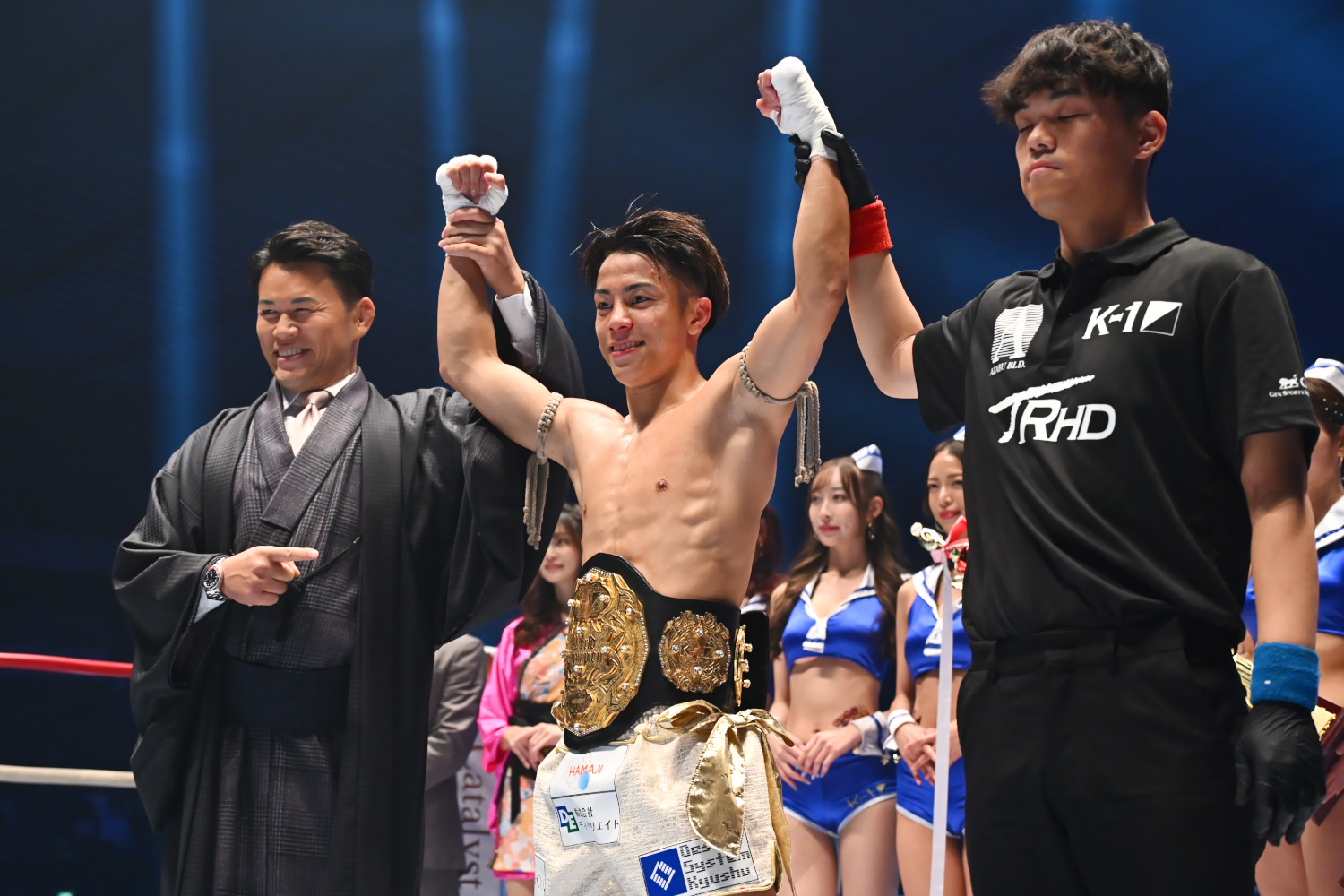 ベルトを巻いた泰央は「カッコよくKOで勝ちたかったですけど、稲垣君が相当練習してきて厳しい戦いになりました」と稲垣を称え、セコンドの家族、スポンサー、そして平本蓮に感謝の言葉を述べた。