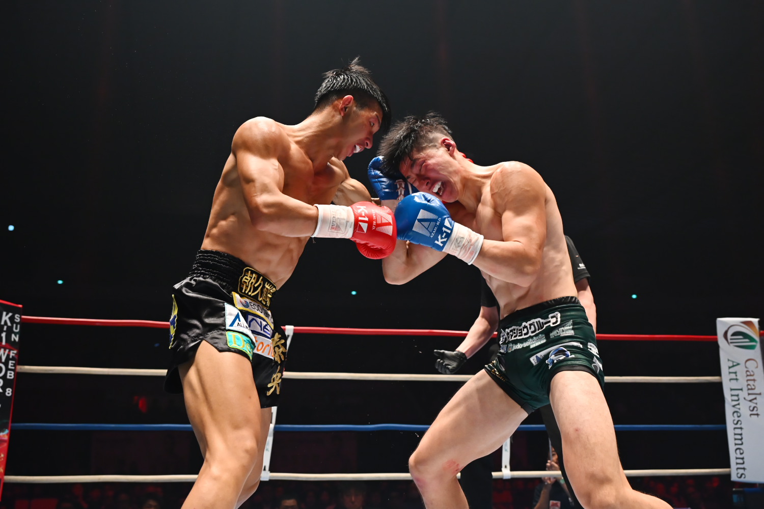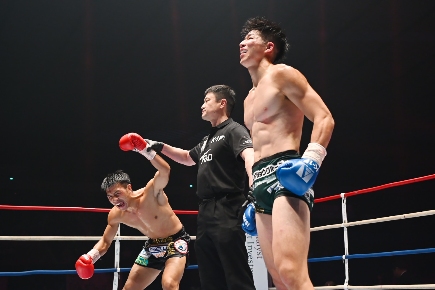 3R、パンチの攻防で、石井が左フックを当てるが、黒川も相打ちで右フックを当てると、石井がひるんで後ろに下がる。だが石井は持ち直すと、終盤、黒川の左テンカオのタイミングで、右フックを当ててダウンを奪う。その後も黒川は必死にパンチを振るうが、石井は強打を許さず、さらにパンチを当て終了する。石井が10-8でポイントを取る。記者採点は28-25で石井。ジャッジ3者とも28-26で石井を支持し、石井が判定勝ちで悲願のK-1王座奪取を果たした。