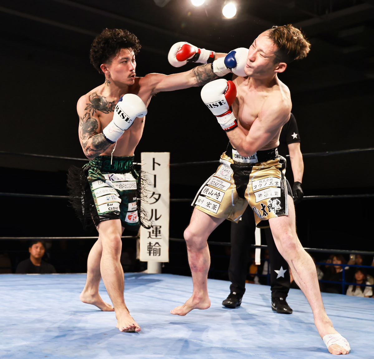 1ラウンドは末永のカーフキックがヒットするが乱太郎の左ストレートも末永の顔面を再三捕らえる。しかし末永は終盤左フックでダウンを奪う。