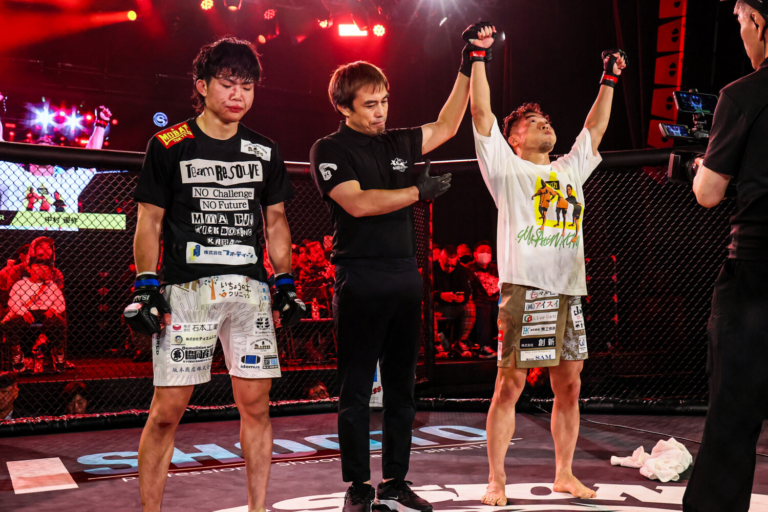 マイクを持った宮口は「夜叉坊さんありがとうございます。総合始める前からずっと見ていた選手なので、戦えてうれしいです。これから練習とかお願いします」と石原を称え「とりあえずUFC目指しているんで、そこに行けるよう頑張ります」とアピールした。
