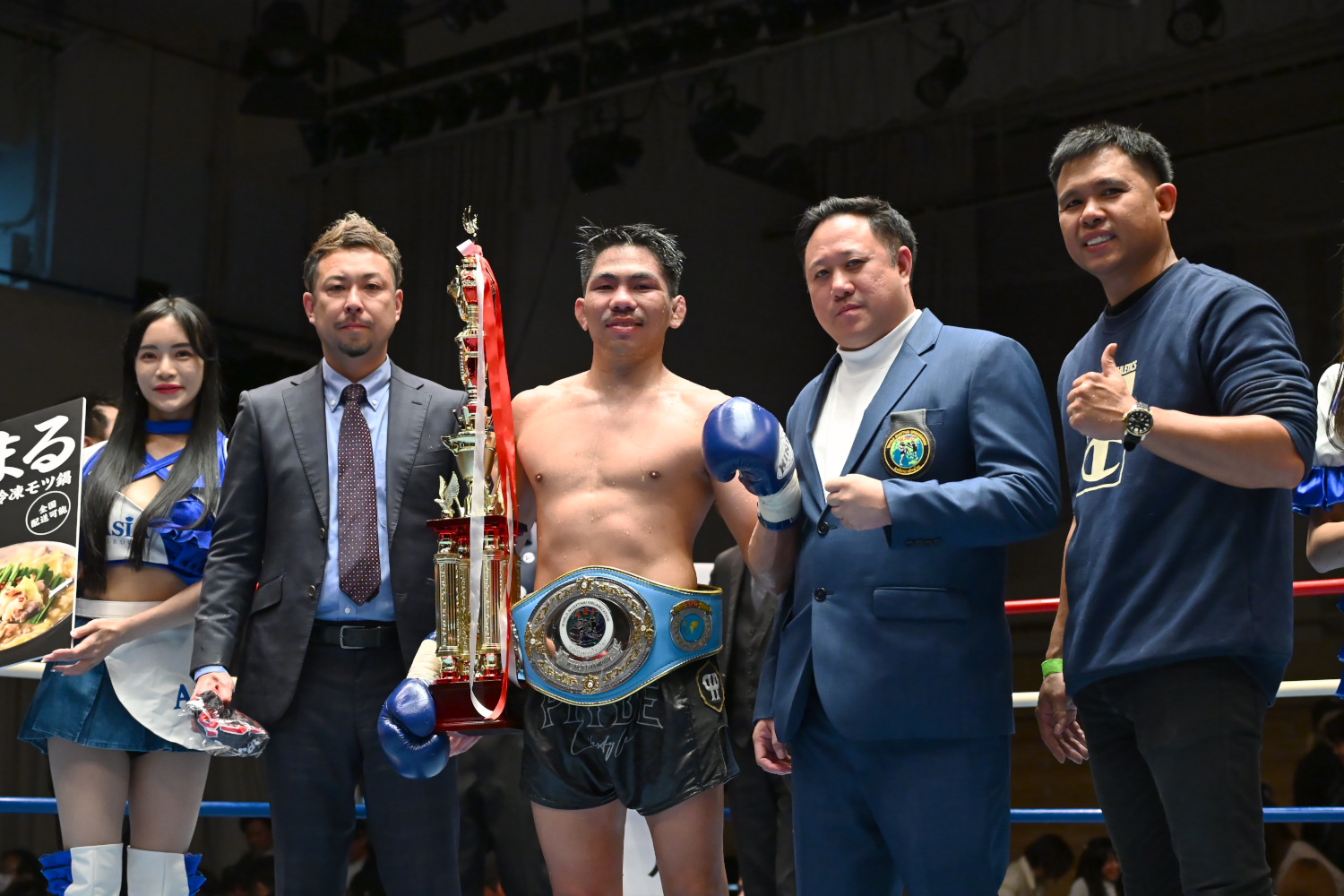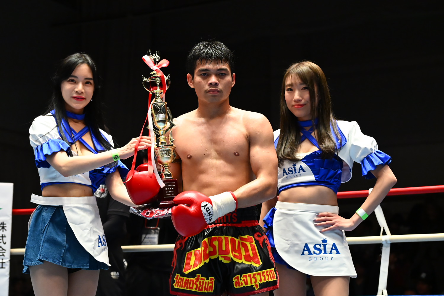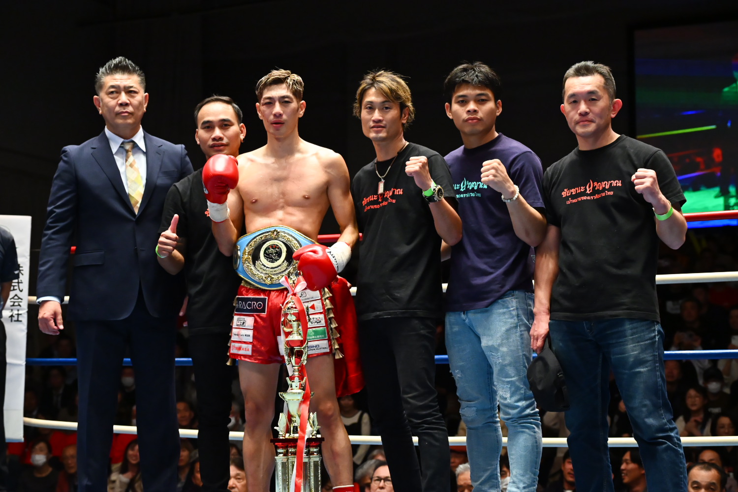 マイクを持った瀧澤はラジャダムナン王座への挑戦を熱望し、最後は2人の娘と共に勝利を喜んだ。