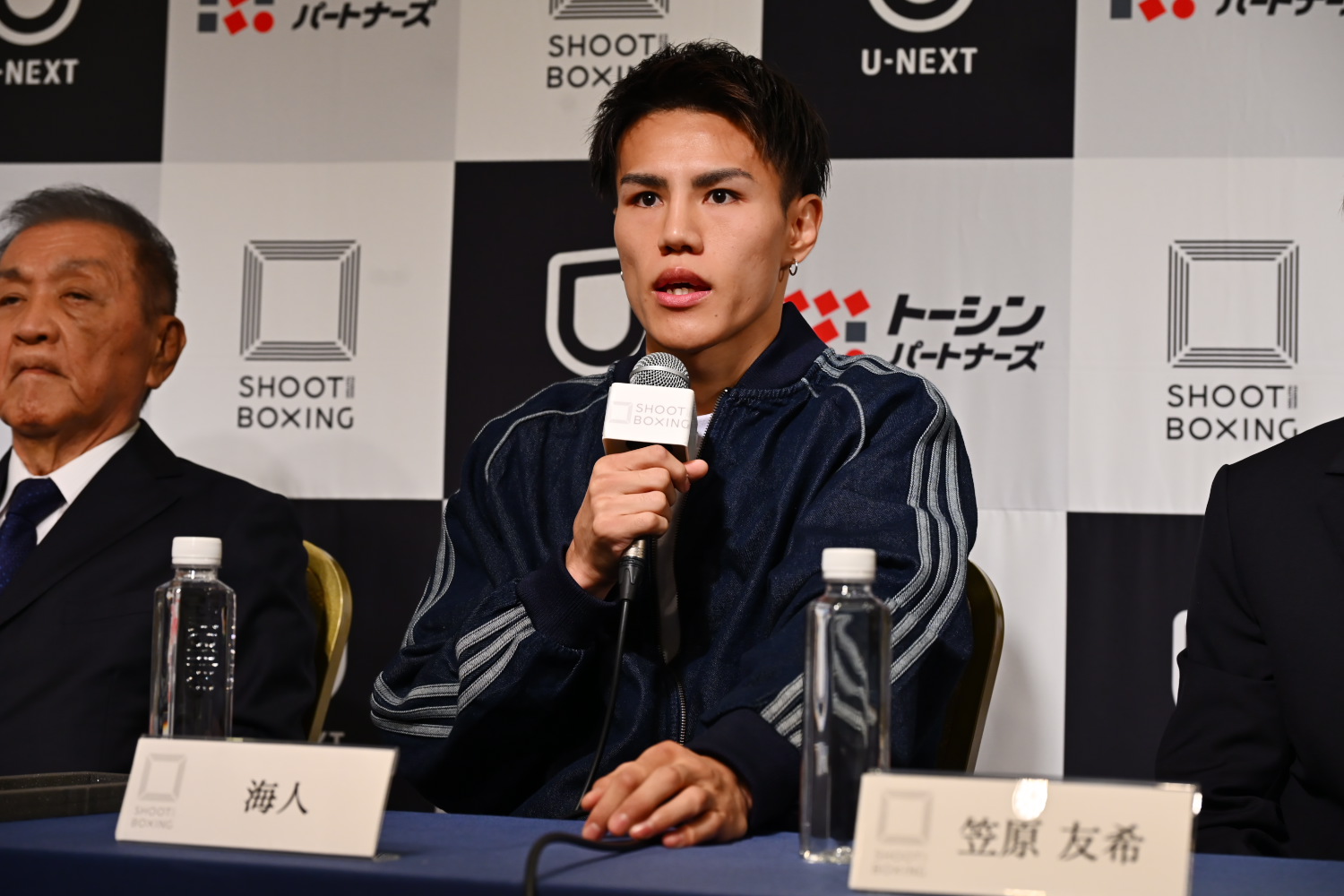 SB 40周年記念大会のメインイベンターを務めることについて、海人は「SBのリングで最後に負けたケール選手に、この40周年という一番大きな大会でリベンジすることが本当に一番大事なことやと思うし、ここで負けたらまたシュートボクサーが弱いと思われてしまうし、僕自身もそう思われてしまうし、世界最強を目指しているので、40周年にふさわしい勝ち方をしたいです」と語った。