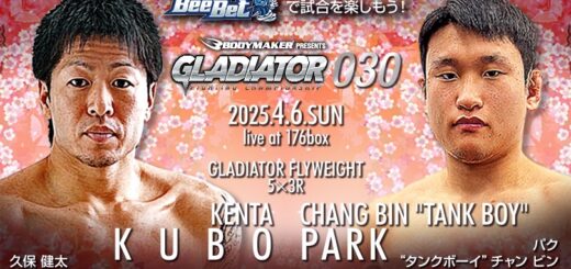 GLADIATOR 11.30 大阪 176BOX(結果):南友之輔、ルキヤにTKO勝ちしバンタム級王座防衛。中川皓貴、パン・ジェヒョクに判定勝ちしフェザー級王者に。小森真誉、田中有に判定勝ちしライト級王者に。今井健斗、岩崎圭吾に一本勝ちしフライ級王者に