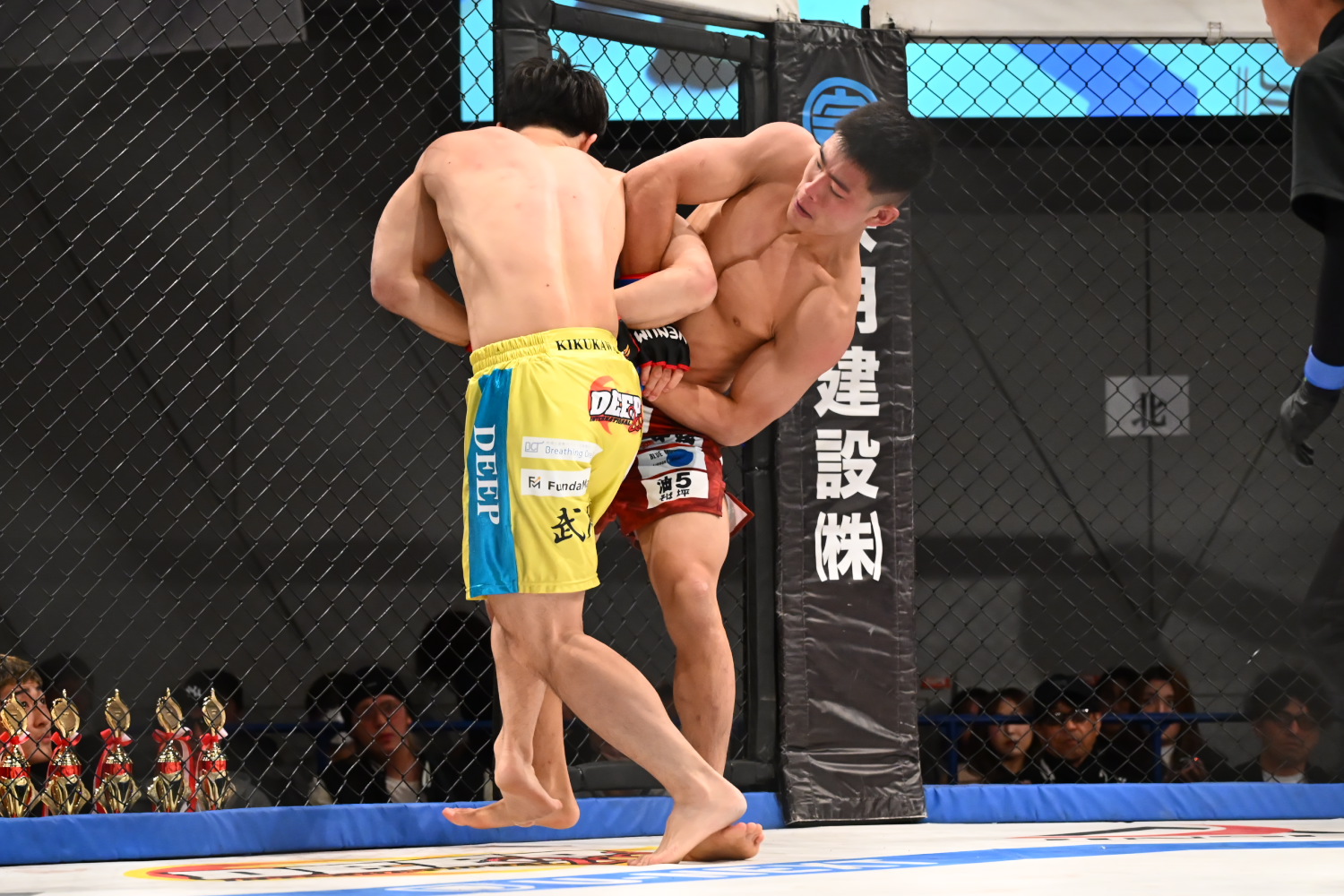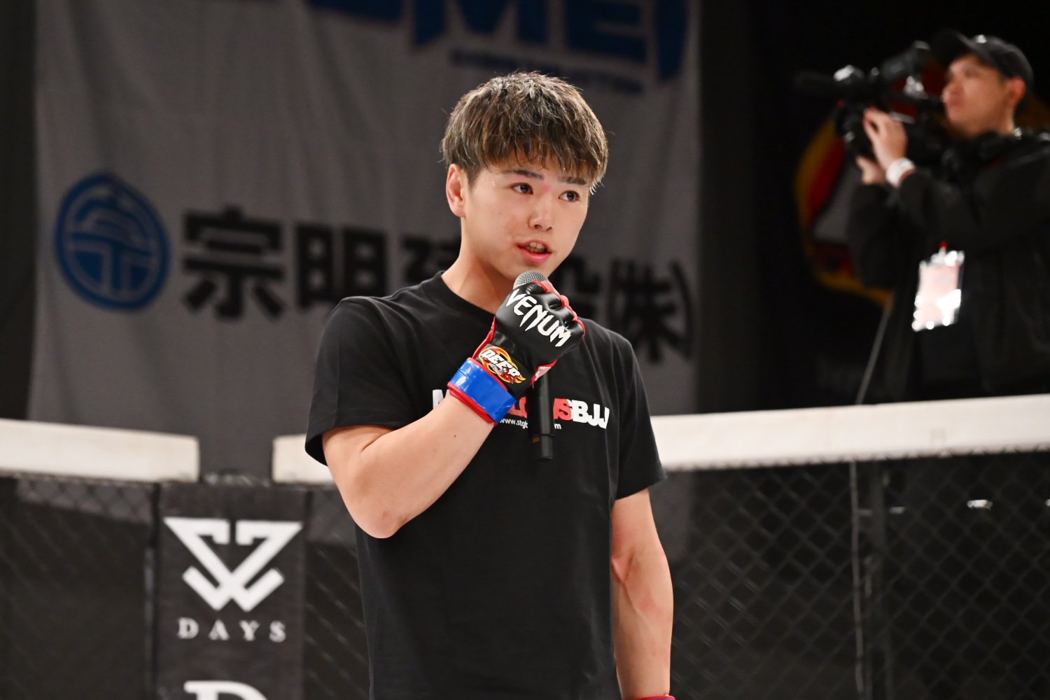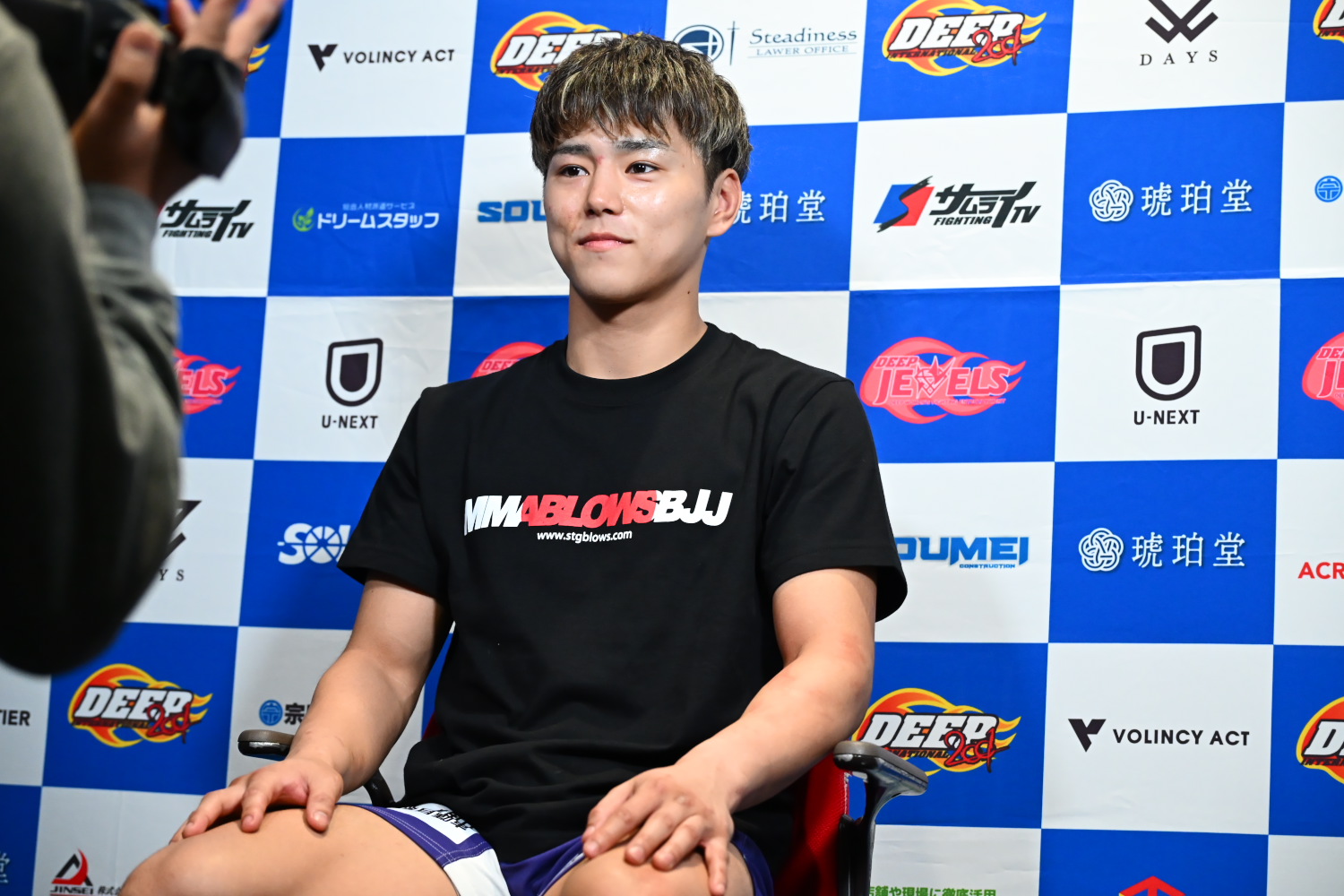 中務は22歳。DEEPフューチャーキングトーナメント2023で優勝し、同年5月にプロデビュー後は4戦全勝(2一本)。怪我による1年半のブランクを経て、今年4月のDEEP大阪大会では切嶋龍輝に2Rツイスターで一本勝ちしている。