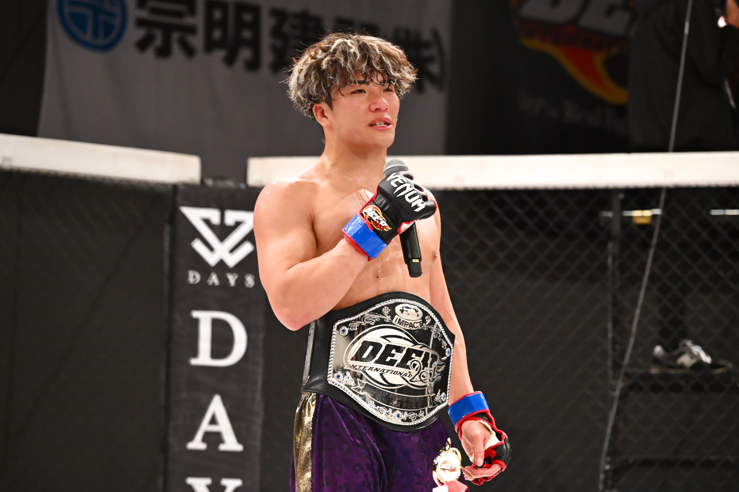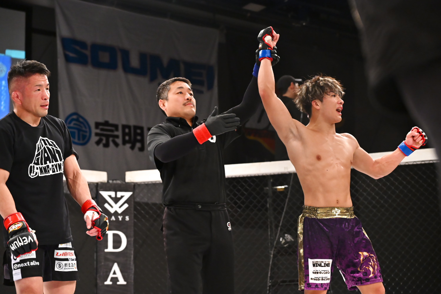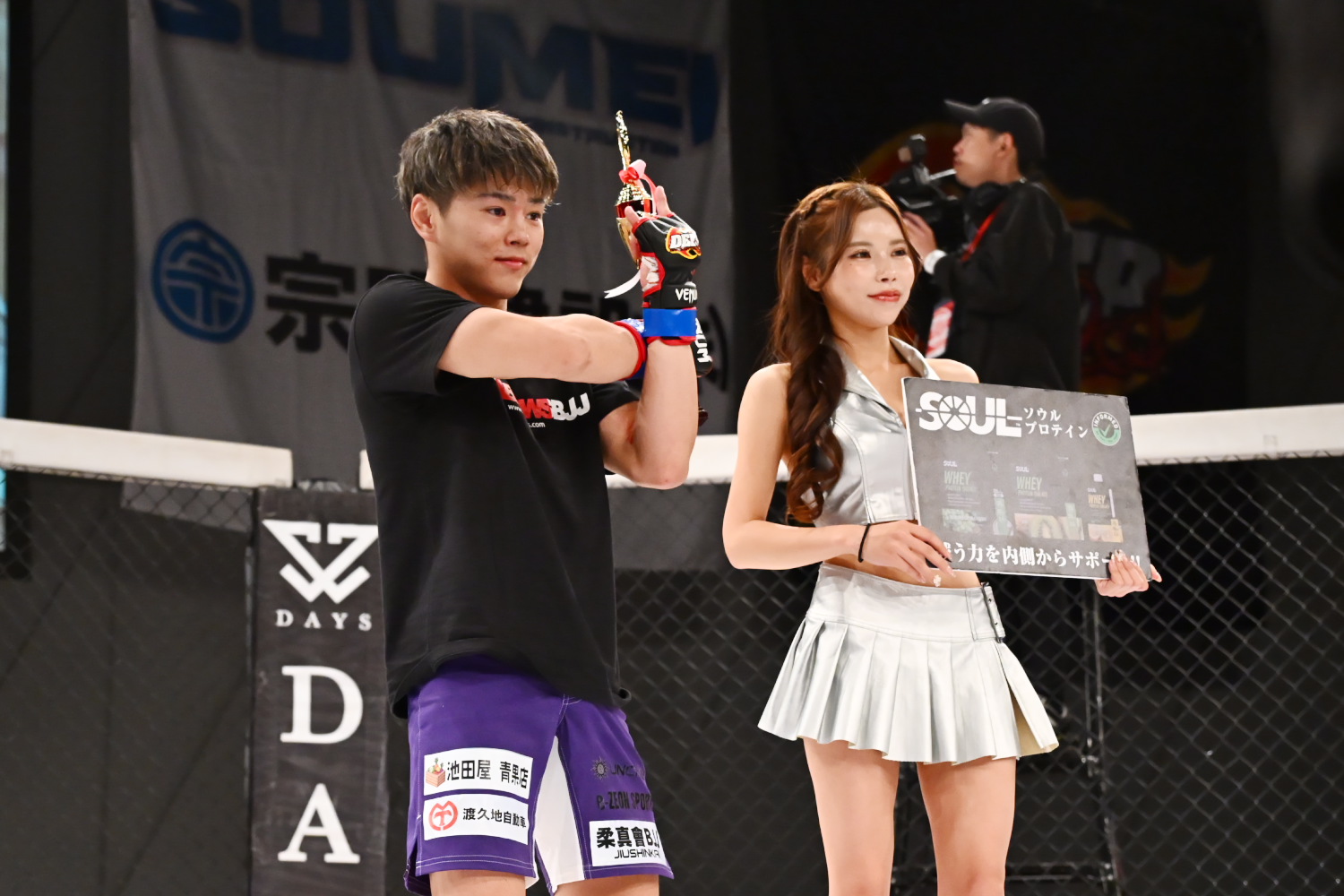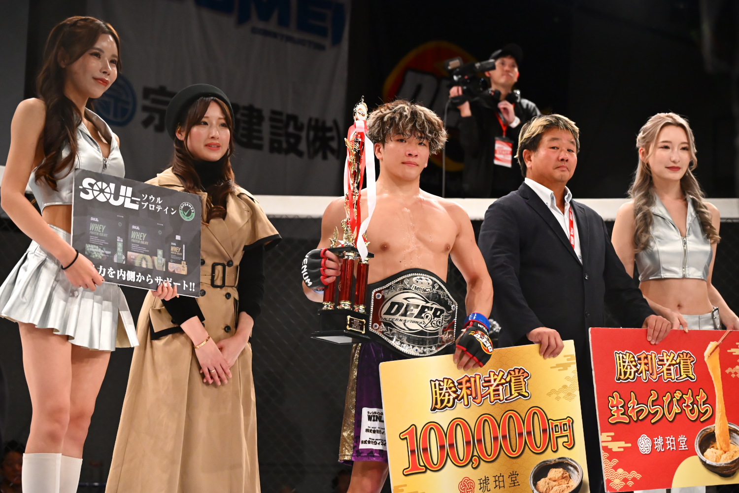 中務は22歳。DEEPフューチャーキングトーナメント2023で優勝し、同年5月にプロデビュー後は4戦全勝(2一本)。怪我による1年半のブランクを経て、今年4月のDEEP大阪大会では切嶋龍輝に2Rツイスターで一本勝ちしている。