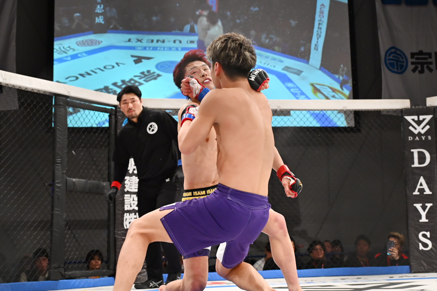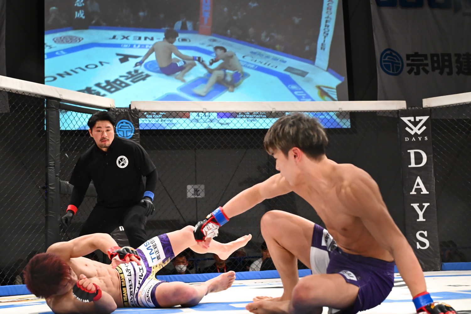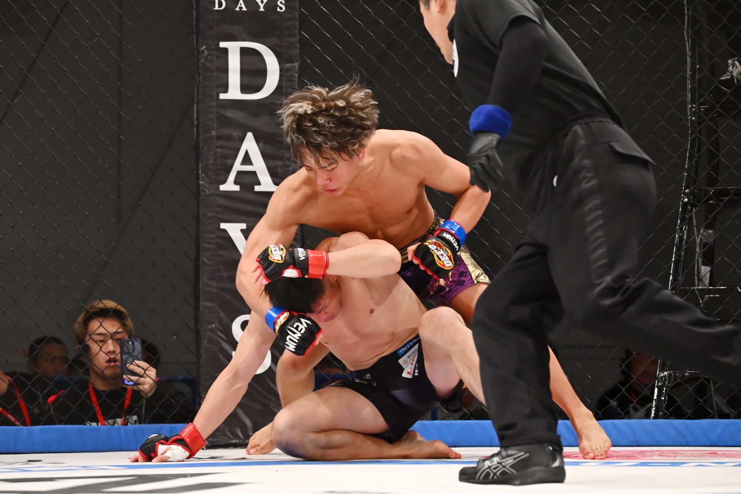 1R、鈴木がテイクダウンを繰り返し、バックを奪い、裸絞めを狙いながらパウンドを当て、トップポジションになってからもパウンドを当て攻め続ける。2R、鈴木は開始すぐからテイクダウンを奪うと、素早くバックを奪い、裸絞めを極めタップを奪った。