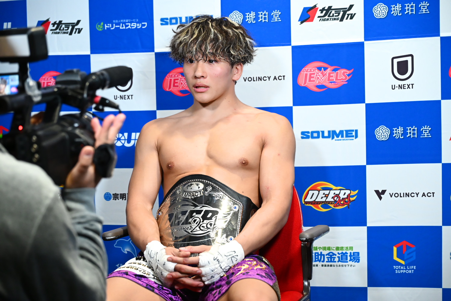 バックステージで杉山は「勝てたんですけど、もっと上に行くにはまだまだだと思いました。首相撲はキックの頃から得意にしていたので自信がありました。絶対相手が組んで来るのはわかっていましたけど、THE BLACKBELT JAPANには組み技が強い人がたくさんいて鍛えられているので自信がありました。DEEP代表として、もっとデカい舞台だったりで活躍し、ストロー級を広めたいです」と話した。