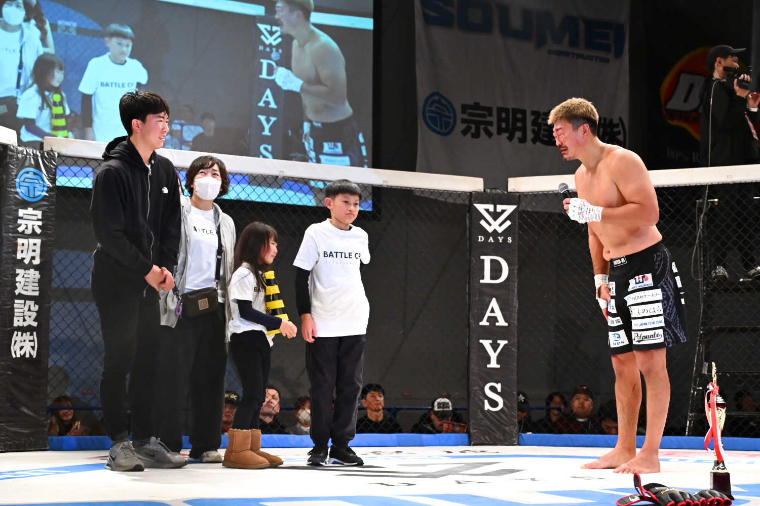 マイクを持った相本は「今日の課題は喧嘩だったので、喧嘩できてよかったです。高橋さん、強かったです。(3月の)トーナメント一回戦、自分が失神して、高橋さんが命かけて準備してくれたのを無駄にしたのに、再戦してくれてありがとうございました」と今回の試合について述べた後「Xで大晦日、新居すぐるさん(と戦って欲しい)って言われていますけど、自分はエンタメというか…、1試合1試合準備して命かけて戦っているんで、今年はゆっくり休んで、来年一発目、RIZINの舞台で海外勢と戦いたいです」と話し、新居戦については拒否反応を示した。実際のところ相本はパンチを被弾して鼻血を出していたため、大晦日のRIZINは出場困難だろう。