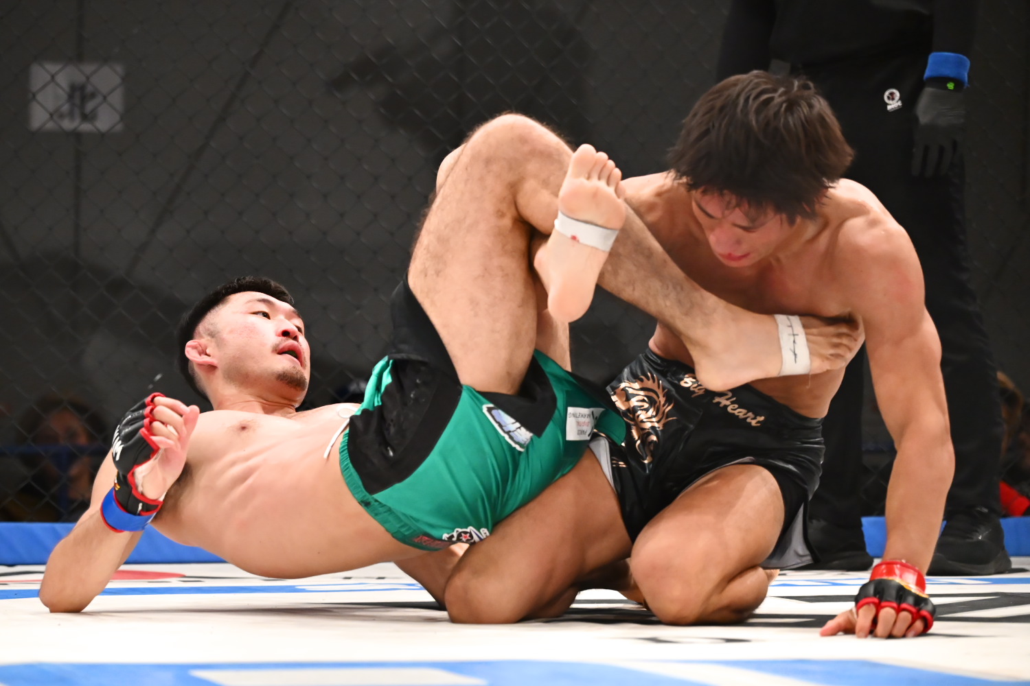 1R、河村がパンチを振るって前に出て、飛びついて石司の胴体に両足を絡めてからグラウンドに引き込む。石司は河村の下からの仕掛けに対処して立つと、豊永レフェリーはブレイクする。河村はすぐに再び同じように引き込むが、膠着するとブレイクがかかる。だが河村は打撃戦でも強みを発揮し、右ストレートを当てて石司をダウンさせる。河村は上になってから足関を狙うが、石司も足関の攻防に付き合い、そのまま膠着し時間切れに。記者採点は河村。
