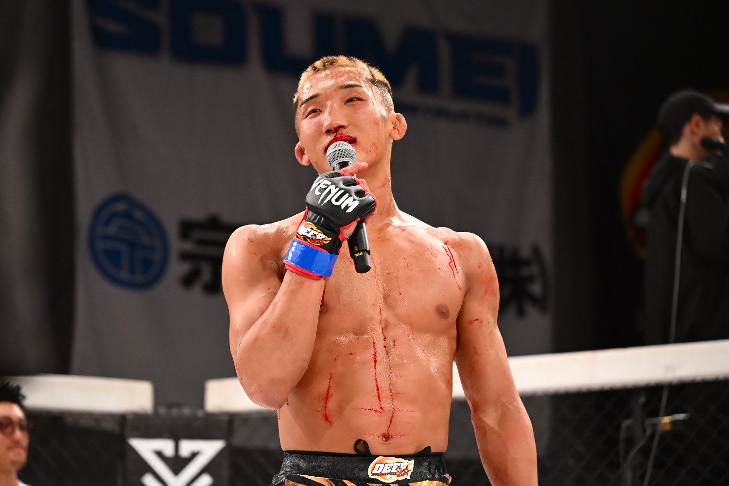 青井は28歳。修斗、RIZINでの戦いを経て、22年からDEEPに参戦。昨年3月、神田コウヤに判定2-3の僅差でリベンジし、フェザー級王座を獲得。12月には元同級王者の芦田崇宏に2R TKO勝ち。5連勝で今年5月のRoad to UFCに参戦したが、一回戦でユン・チャンミンに判定負け。9月のDEEP大阪大会ではチェ・ソンヒョクに判定勝ちした。