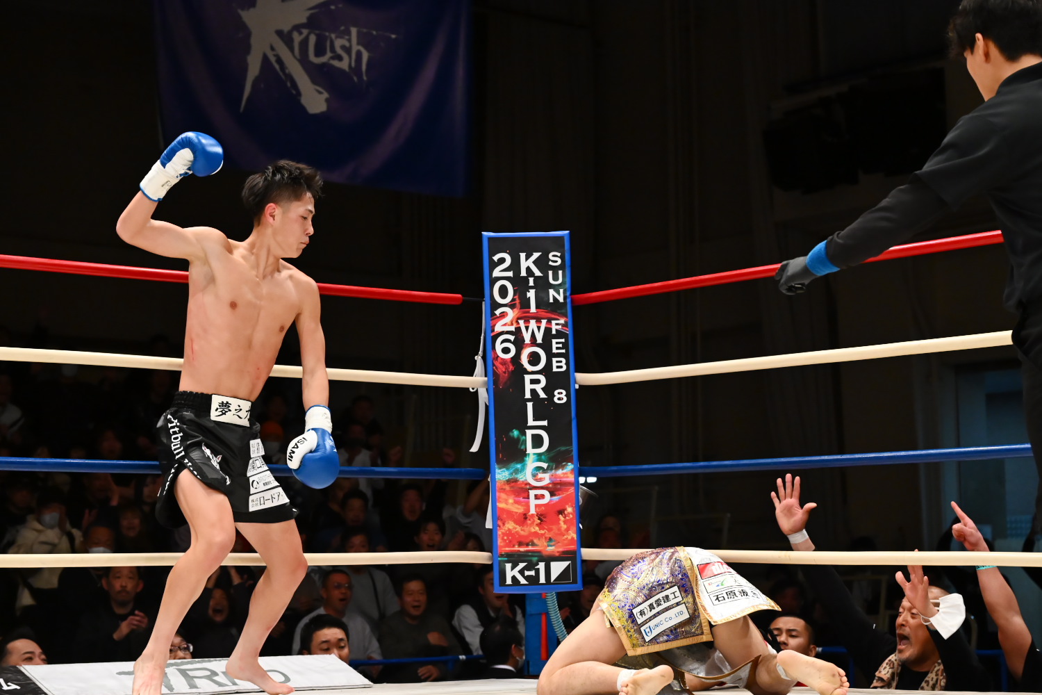 Krush 12.19 後楽園ホール(レポ):19歳の上遠野寧吾、安尾瑠輝に3R逆転KO勝ちし7戦全勝でフライ級王者に。齋藤紘也、大石昌輝に判定勝ちしウェルター級王者に