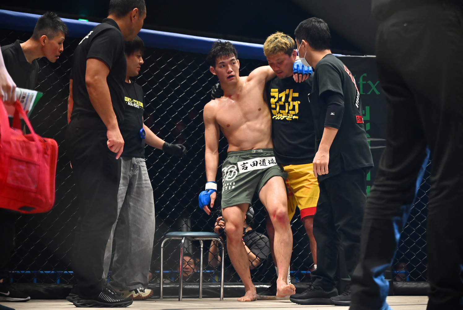 1R、内藤がタックルで倒し、立たれてもコントロールを続ける。中盤、離れると、高橋も右フックを当てるが、終盤、内藤がサウスポーの高橋に右インカーフを効かせると、タックルで再び倒す。内藤はバック、トップと動きつつ、パウンドを当てて追い詰める。内藤がポイントを先取する。だがインターバル中、高橋が左足の痛みを訴え、セコンドが止め、内藤のTKO勝ちとなった。